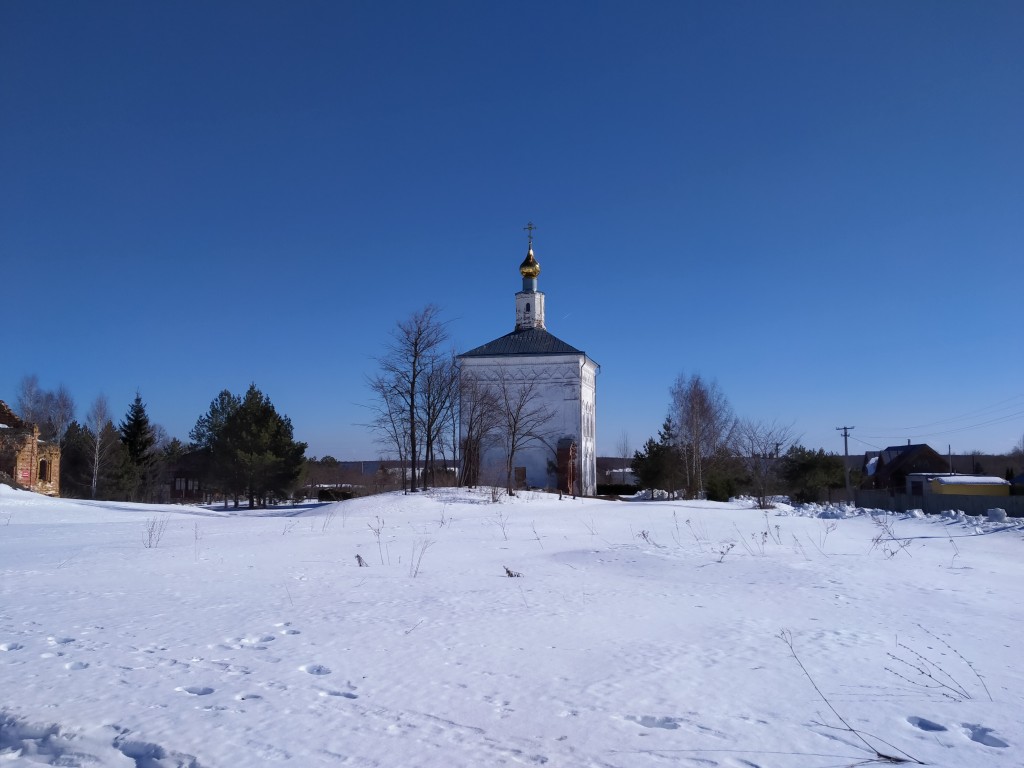 В письменных источниках первый деревянный храм упоминается как существовавший уже в 1556 г. Каменный, двухэтажный, пятиглавый храм был построен на средства прихожан: нижний этаж теплый, с престолом – в честь Архистратига Михаила, построен в 1769 г., а верхний – холодный, с престолом – в честь Живоначальной Троицы, построен в 1817 г.