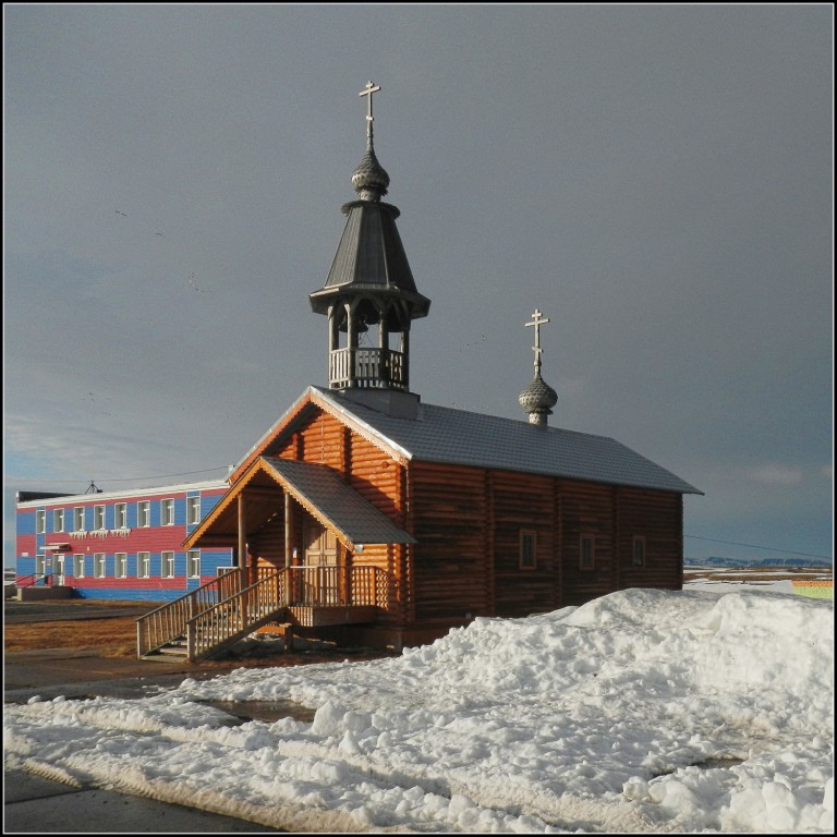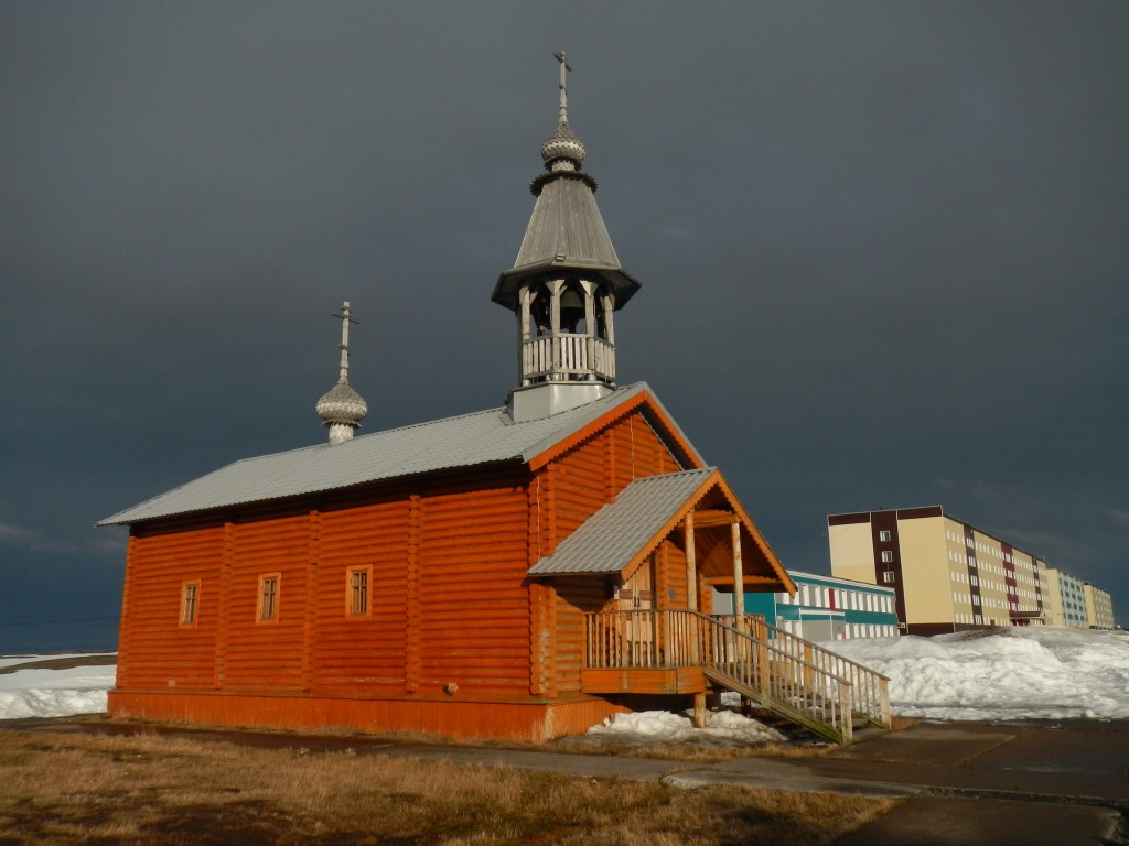 Свято-Никольский православный храм построили в 2006 году в поселении Белушья Губа, находящемся на архипелаге Новая Земля, являющегося местом дислокации Центрального полигона России. Он является самым северным храмом России.До революции на землях архипелага располагалось подворье Николо-Корельского монастыря, где проживали одиннадцать монахов. В годы советской власти вся церковная жизнь прервалась и начала возрождаться только в 1997 году, после освящения епископом Тихоном первого камня в основании будущего новоземельного храма. Символична дата освящения, совпавшая с днями празднования очередной 52 годовщины образования российского Центрального полигона, где более полувека стоит надежный ядерный щит страны. Новоземельцы епископу Тихону, освещавшему храм, преподнесли в подарок морской кортик.