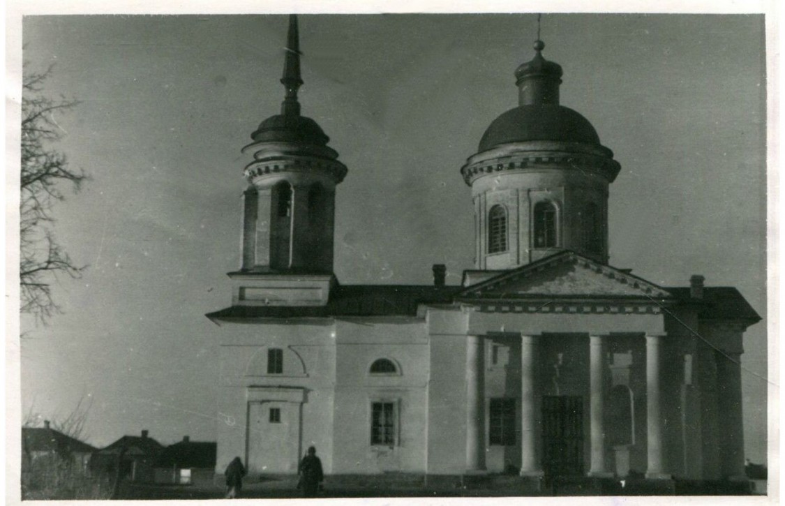 Первая деревянная церковь на этом месте была построена в 1759 году по инициативе князя Н. Радзивилла и, видимо, была униатской. Нынешняя каменная крестообразная церковь в классическом стиле была построена усилиями священника протоирея С. Липского. При этом старую деревянную церковь разобрали, а брёвна использовали для обжига кирпичей для нового храма. Полуциркульные окна верхнего света, ротонда верхнего яруса колокольни и дорические четырёхколонные портики с треугольными фронтонами говорят о том, что строил храм зрелый архитектор эпохи ампира.
