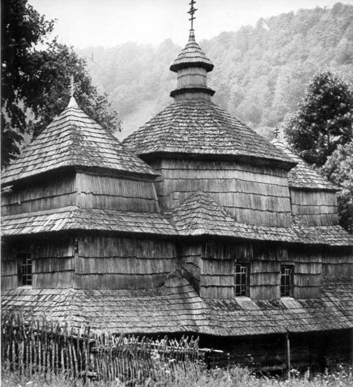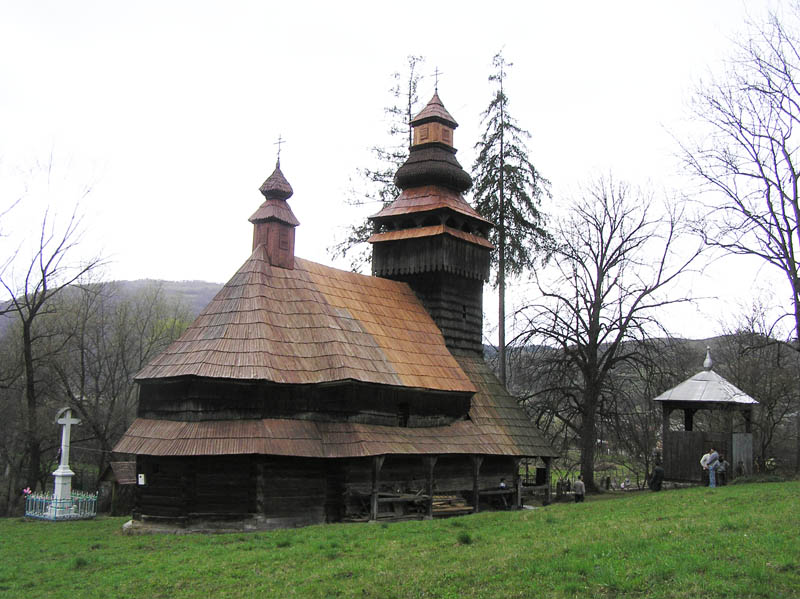 Деревянная, построена из дубовых брусьев. Очень маленькая с равноширокими срубами бабинца и нефа, перекрытыми одной крутой крышей. Восточная часть, более...