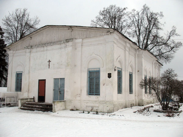 Храм построен на кладбище в 1942-43 году с приходом немцев как временный и с тех пор не закрывался. Стены деревянные...