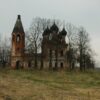 Устроена церковь об одной главе вместе с колокольнею и с двумя портиками, покрыта обычным листовым железом, на церкви два восьмиконечных креста деревянных, обитых белою вызолоченною жестью. Внутри и снаружи церковь оштукатурена и окрашена известью, а крыша, глава и шпиль колокольни масленою краской. Главный трехпрестольный храм во имя Тихвинской Божией Матери каменный, построен в виде прямоугольника с выдающимися на восток полукружиями, а с южной и северной стороны церкви устроены два из плиты портика, с четырьмя приступами и с четырьмя каменными колоннами на каждом портике, поддерживающим крытые железом фронтоны с карнизом.