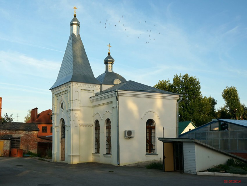 Храм святителя Иоанна Златоуста Деревянная Златоустовская церковь при мужском приюте и богадельне находилась на западной окраине города, вблизи мужского Троицкого монастыря и Казанского кладбища на ул. Кладбищенской, ныне Л. Толстого. В 1860-х гг., городским управлением Общественного банка был устроен приют для 50 бедных мальчиков мещанского звания и богадельня на 50 стариков с содержанием из ежегодной прибыли учреждения. Различными благотворителями для размещения призреваемых были приобретены два здания. В 1872 г. по благословению епископа Орловского Макария (Миролюбова) на средства елецких купцов Н.Е. Назарова, М.Г. Заусайлова, Хренникова, Двойченкова и братьев Калабиных между зданиями приюта и классной комнатой построена была деревянная церковь, оштукатуренная снаружи. В том же году иждивением купца И.И. Калабина в храме устроен двухъярусный иконостас. По его желанию главный престол храма освящён в честь св. Иоанна Златоуста — небесного покровителя жертвователя. Тот же И.И. Калабин подарил в приютскую церковь икону в сребропозлащённой ризе с изображением св. Иоанна Златоуста и св. Пелагеи — ангела его супруги. Старанием ктитора Н. Перекалина Златоустовский храм украшен иконами и обеспечен утварью, а в 1881 г. обновлён иконостас. В 1902 г. неизвестный пожертвовал серебряные ризы для икон Спасителя и Божией Матери, а на собранные прихожанами деньги приобретена была медная позолоченная риза с серебряным венком на икону Казанской Божией Матери, находившейся за правым клиросом. Как и все домовые храмы, елецкая церковь во имя св. Иоанна Златоуста при мужском приюте и богадельне была закрыта, скорее всего, сразу после революции. В годы советской власти территорию приюта занял детский дом-интернат № 1. В середине XX в. пришедшая в ветхость деревянная часть храма была разобрана, сохранилась лишь его кирпичная пристройка. Её разделили на два этажа и разместили в ней швейные мастерские интерната.