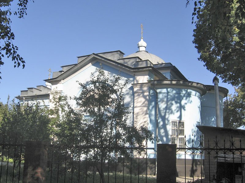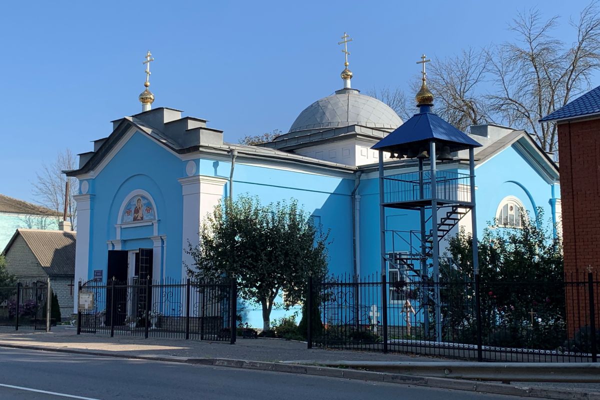 В 1818 году на средства купца 1 гильдии коммерции советника Ивана Степановича Харичкова была построена каменная с колокольней трехпрестольная теплая — церковь в честь Покрова Пресвятой Богородицы. После смерти И.С. Харичкова в 1845 году его вдовой Елизаветой Степановной при Покровском храме была построена теплая каменная трехпрестольная церковь в честь Тихвинской иконы Божией Матери. Престолы были освящены в честь Тихвинской иконы — (центральный), левый в честь блаженного Андрея, правый — в честь праведной Елизаветы. Службы в обоих храмах происходили одновременно: в Покровском — летом, в Тихвинском — зимой.