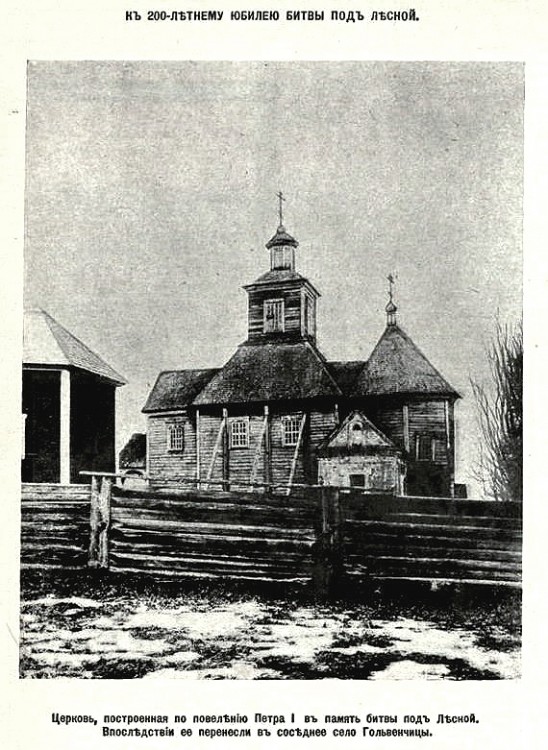 Повелением русского царя в Лесной была построена небольшая деревянная церковь Пресвятой Богородицы (разрушена безбожниками в 1938 году). В середине XVIII столетия «царский храм» был незаконно захвачен униатами. Желая уничтожить память о битве, помещик Волковицкий разобрал церковь и перенес ее в село Головенчицы недалеко от Чаус. В защиту храма выступил архиепископ Могилевский и Белорусский святитель Георгий Конисский. Хотя и не сразу, храм вернули православным. Однако он еще долго оставался в Головенчицах, и только в 1905 году возвратился на свое первоначальное место.