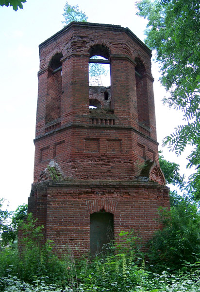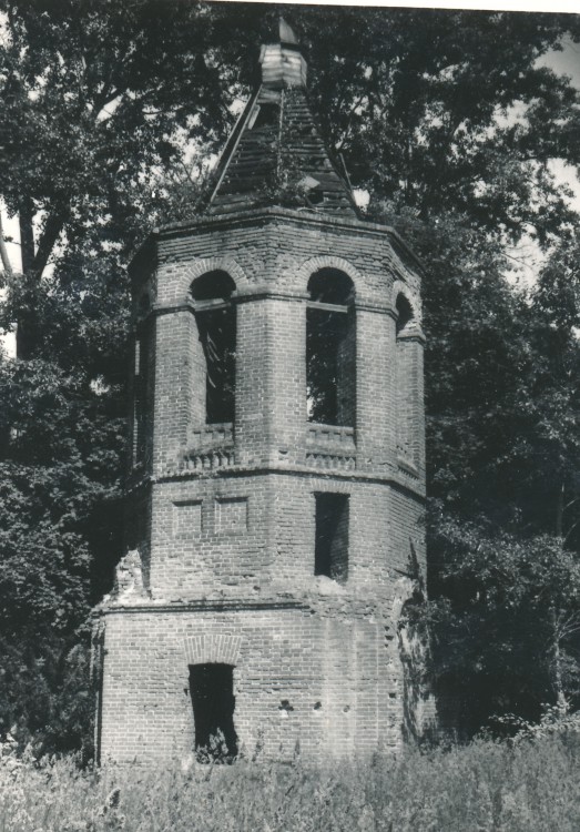 Монастырская колокольня построена в начале ХХ века из кирпича, произведенного на монастырском кирпичном заводе. Первый ярус колокольни занимала небольшая церковь Успения Пресвятой Богородицы с усыпальницей. Алтарная часть разрушена в советское время.