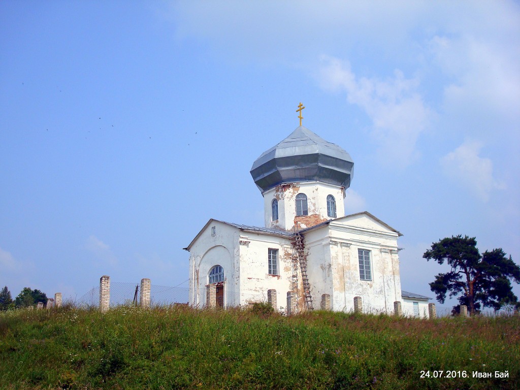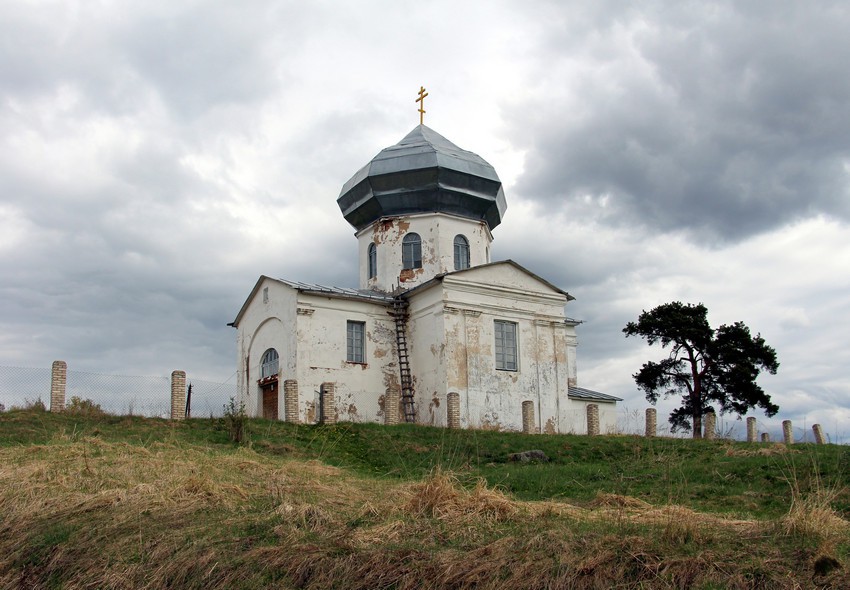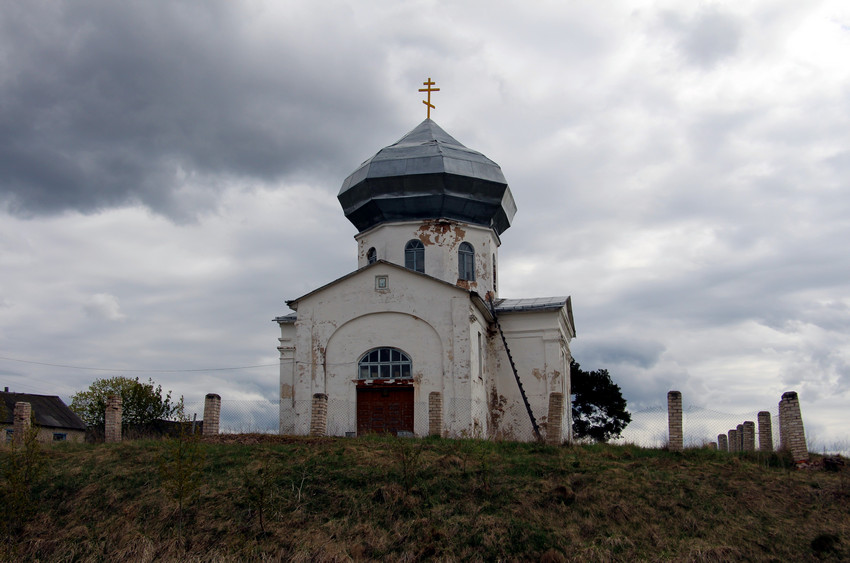 Церковь в Хвошно пережила Великую Отечественную войну. Сохранились её стены и купол.
