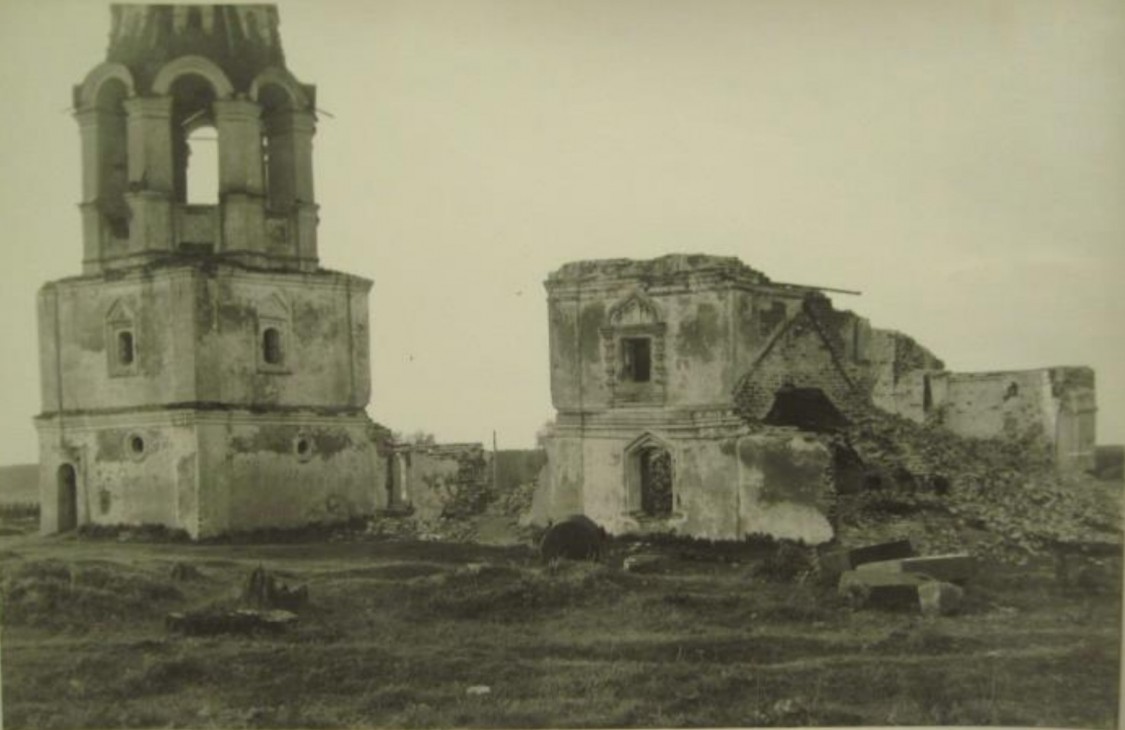 Церковь разрушена по решению райисполкома от 19 июня 1950 г., уцелели только колокольня и остатки стен трапезной.