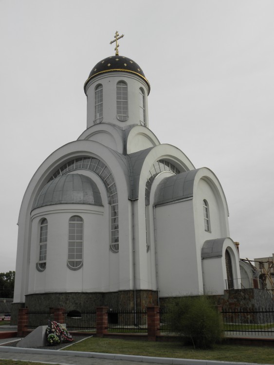 Белокаменная церковь в неовизантийском стиле. Постройка выполнена в крестообразной форме. Четырехгранные закомары поддерживают шатровый барабан. Он опоясан оконной аркадой и увенчан приземистым куполом с крестом. Дверные проемы выполнены в арочной форме, оконные – в арочной, дугообразной и вытянутой овальной. Фасад храма отличается декоративным минимализмом. Рядом с церковью располагается звонница, служащая одновременно и входом на церковную территорию. Ее увенчивает шатровый барабан с арочными проемами и шлемообразный купол.