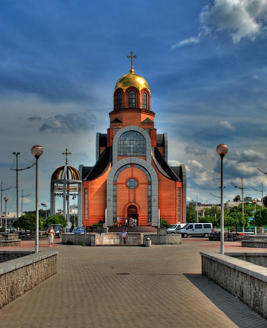 Храм Святого Великомученика Георгия Победоносца был построен в византийском стиле. Высота храма — 42 метра. Автором проекта стал выдающийся архитектор Украины — Роман Сывенький. Проектно-техническая документация была разработана Проектным институтом «КиевДипротранс» под управлением главного архитектора проекта С. Юнакова. При строительстве были применены новые современные технологии (монолитно-каркасное строение), что и дало возможность построить храм в кратчайшие сроки.