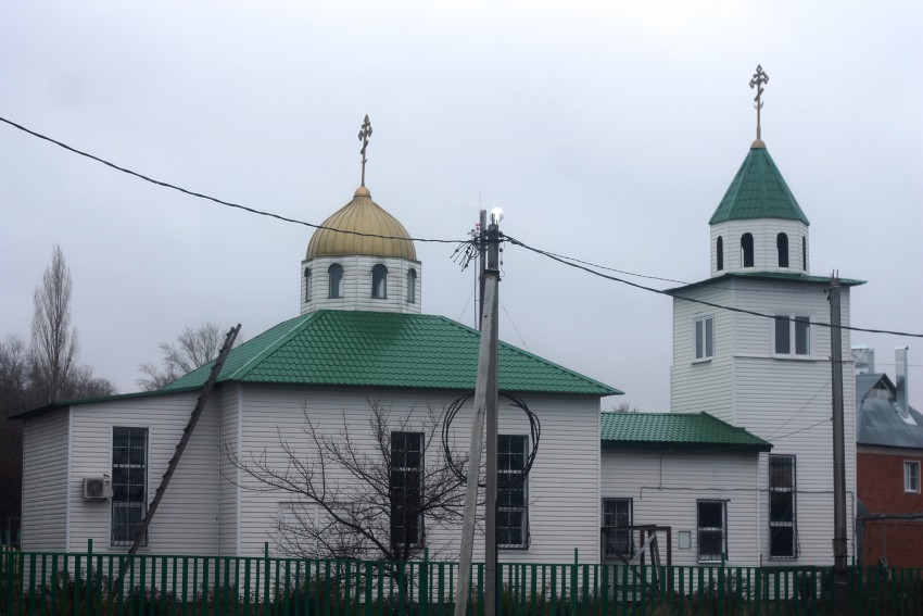 История Тихоновского храма берет свое начало в 1998 году. Освящение закладного камня тогда совершил настоятель Никольского храма г. Воронежа протоиерей Петр Петров (в те года – Каширский благочинный) в сослужении духовенства церковного округа. Храм был возведен по экспериментальному проекту Воронежского алюминиевого завода из сборных металлических конструкций сендвич-панелей и металлических балок. Форма основания храма – «корабль». Высота храма — 10 метров, 1 купол. Колокольня — ярусная, 12 метров.