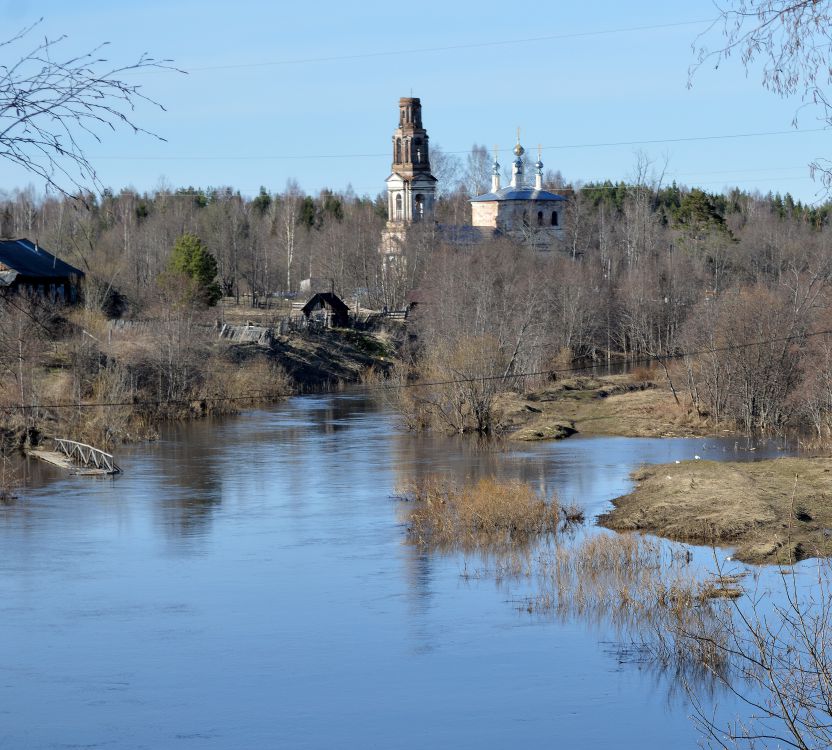Деревянная церковь своим внешним и внутренним устройством обращает на себя внимание археологов, как древность. В ней по правую сторону алтаря находится усыпальница, где покоится тело строителя и основателя бывшей на сем месте обители Александровой, прп. Александра Вочского, к памяти которого окрестные жители имеют особое усердие.