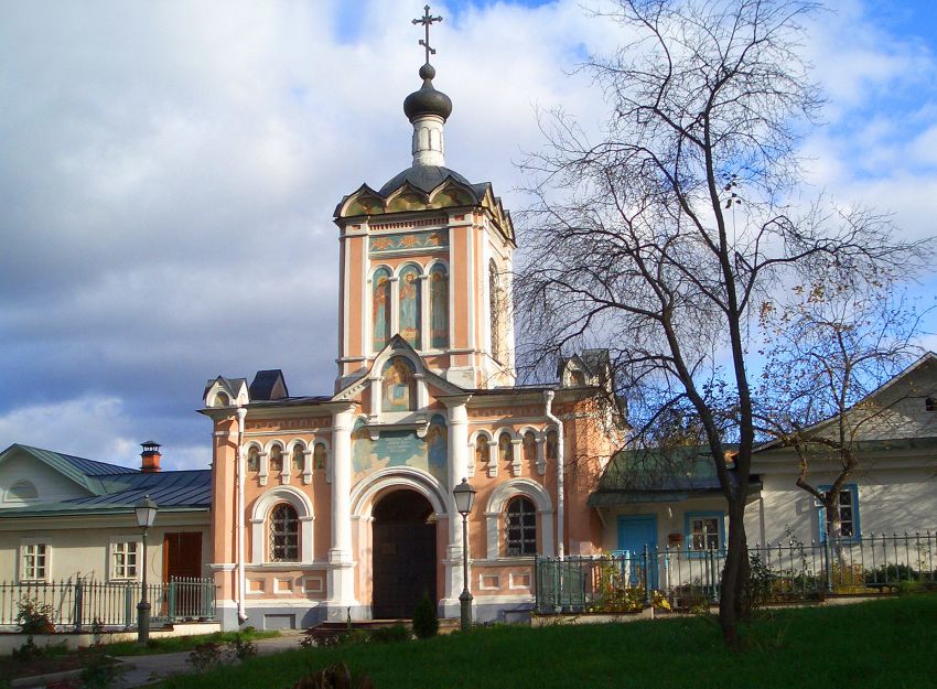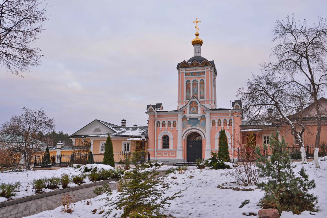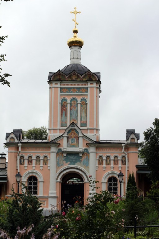 Внешний вид скита довольно точно изображен Достоевским в «Братьях Карамазовых». Небольшая розовая колоколенка из кирпича возвышалась над вратами; с двух сторон, вне ограды, расположены были «хибарки» — род приемных, куда выходили старцы для беседы с женщинами: вход в скит был им запрещен. В нем царило безмолвие. Это был прекрасный сад, полный многокрасочных цветов, растущих вокруг церкви и келий.