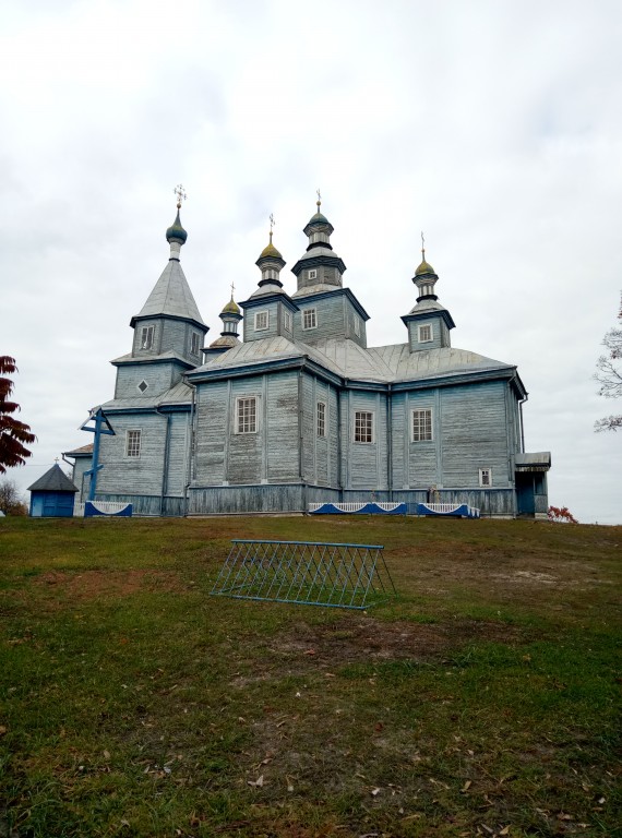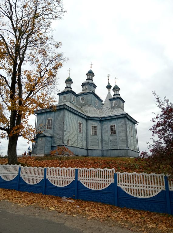 О времени построения первой церкви нет никаких данных. Настоящая приходская церковь, находящаяся среди местечка, построена в 1818 г. на средства местного владельца и прихожан. Зданием деревянная, в виде равностороннего креста, с пятью открытыми куполами, гонтовою крышею, двумя входными дверьми и тремя рядами окон, не имеющих решеток. Стены покрашены в белый, а крыша в зеленый цвет; все здание довольно прочное.