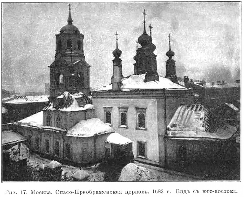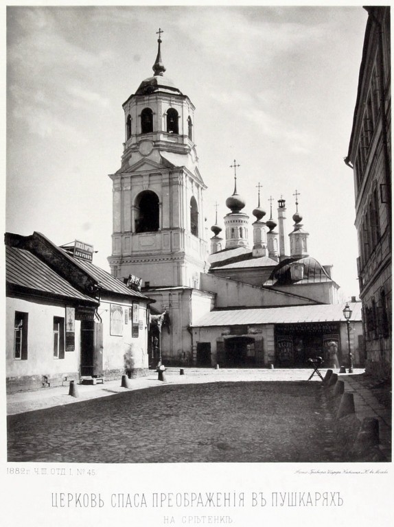 Каменная пятиглавая Преображенская церковь с Никольским приделом возведена в 1681 г. на собственные средства самих московских пушкарей на месте разобранной деревянной церкви. С XVII в. действовала церковно-приходская школа.