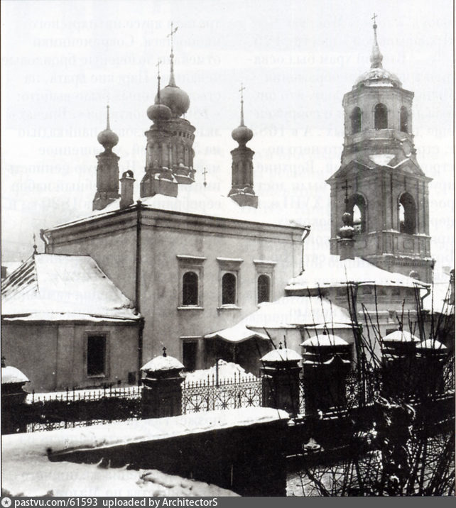Приходская церковь Пушкарской слободы, места компактного поселения московских артиллеристов и отливщиков бронзовых пушек и колоколов, располагавшегося в районе современной Сретенки. Дата сооружения первого храма на этом месте не установлена, однако известно, что деревянная церковь существовала здесь уже в начале XVII в. — к 1613 г. составлена опись.