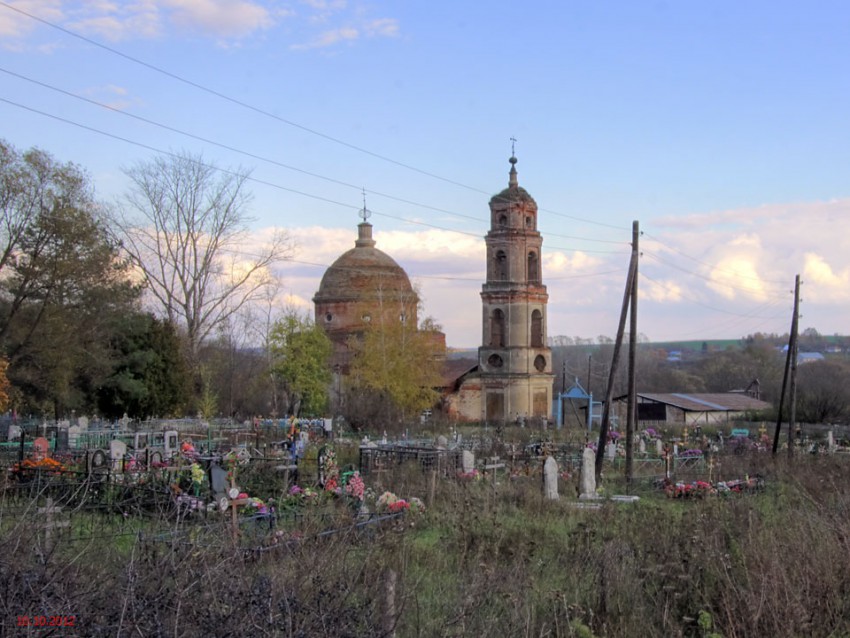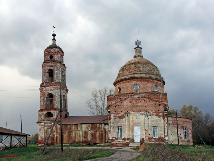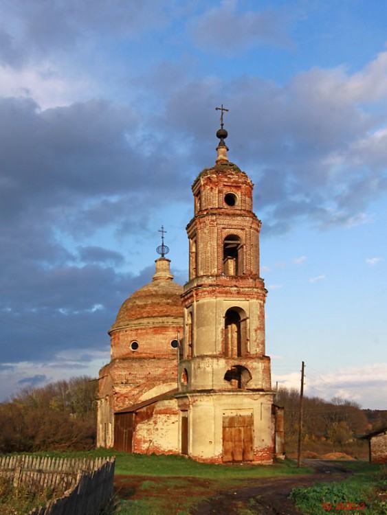 Вместо деревянной Преображенской церкви (впервые упоминается в 1676 г.) в 1822 году помещиком, надворным советником Иваном Ивановичем Кудрявцевым построена каменная церковь в честь Воскресения Христова. В трапезной части храма устроены приделы в честь Преображения Господня (правый) и Покрова Пресвятой Богородицы (левый). В 1888 году под Воскресенской церковью и кладбищем состояло 1 12 дес. земли, усадебной — 3 12 дес., пахотной 33 дес. По сведениям клировой ведомости за 1914 год, в приходе числились с.Кудрявщино, д.Полунино, д.Березовские выселки, д.Вылетовка. По данным Страховой оценки 1910 г., церковь имела длину 16 саж., ширину 4 саж. 2 аршина и высоту до карниза 6 саж. Четырехъярусная колокольня имела высоту 10 саж. до карниза. Главный иконостас был шириной 14 арш. и высотой 16 арш., придельные — шириной по 10 арш. и высотою по 4 арш.