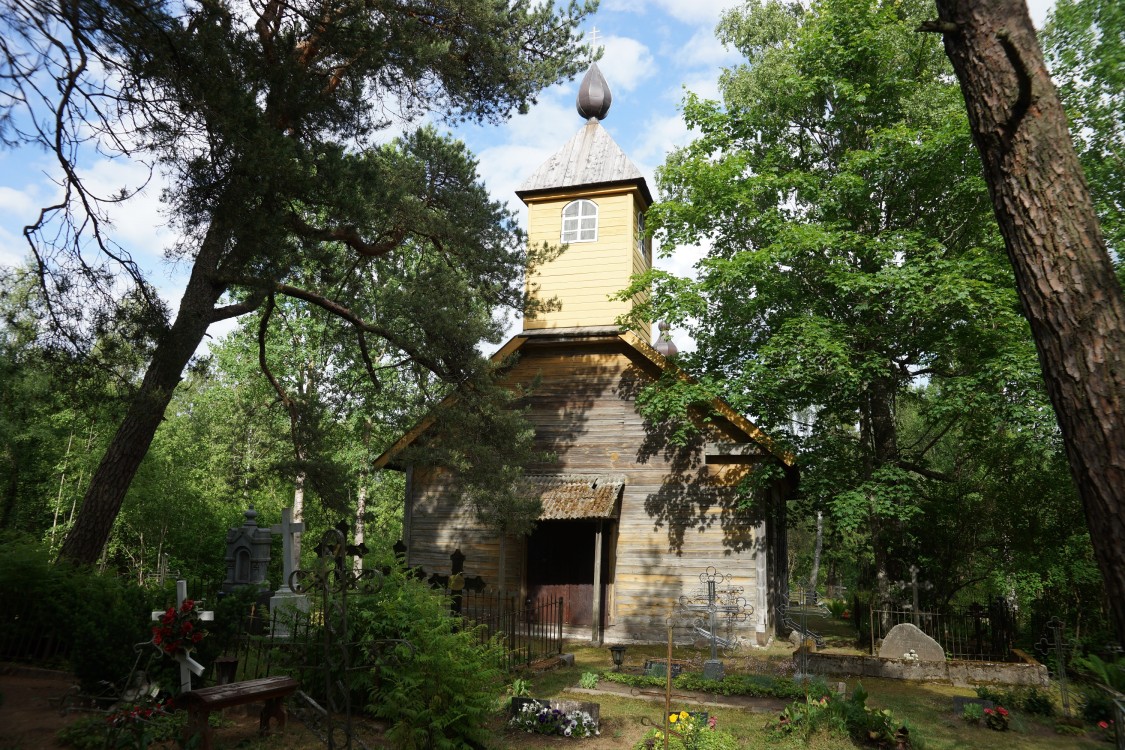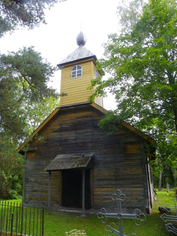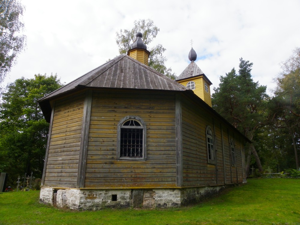 Церковь была построена на местном православном кладбище и сооружалась по плану, составленному местными жителями. Храм небольшой, на каменном фундаменте, стены и крыша деревянные. Церковь была освящена во имя Рождества Честнаго Славного Пророка, Предтечи и Крестителя Господня Иоанна в 1863 году. Первым священником совершавшим богослужение в храме был иерей Петр Петрович Безценный. Трелин сам трудился над постройкой, создал своими руками иконостас и всю оставшуюся жизнь прослужил церковным старостой. На свои собственные средства храмосоздатель купил необходимую утварь и иконы, а ризница была пожертвована архиепископом Рижским Платоном. Скончался Хрисанф Трелин 12-го февраля 1883 года, на 83 году жизни (по записи в метрической книге; а на памятнике указывается 87 год жизни) и был погребен 17 февраля напротив притвора храма. Могила его сохранилась, и за ней ухаживают местные жители до сих пор. В более ранние труды по истории прихода вкралась ошибка о годе смерти Хрисанфа, и вместо 1883 указывается 1885 год, и эта ошибка продолжает переходить и в современные описания истории прихода. После смерти Трелина, церковным старостой был его сын Василий.