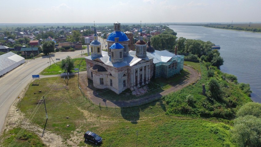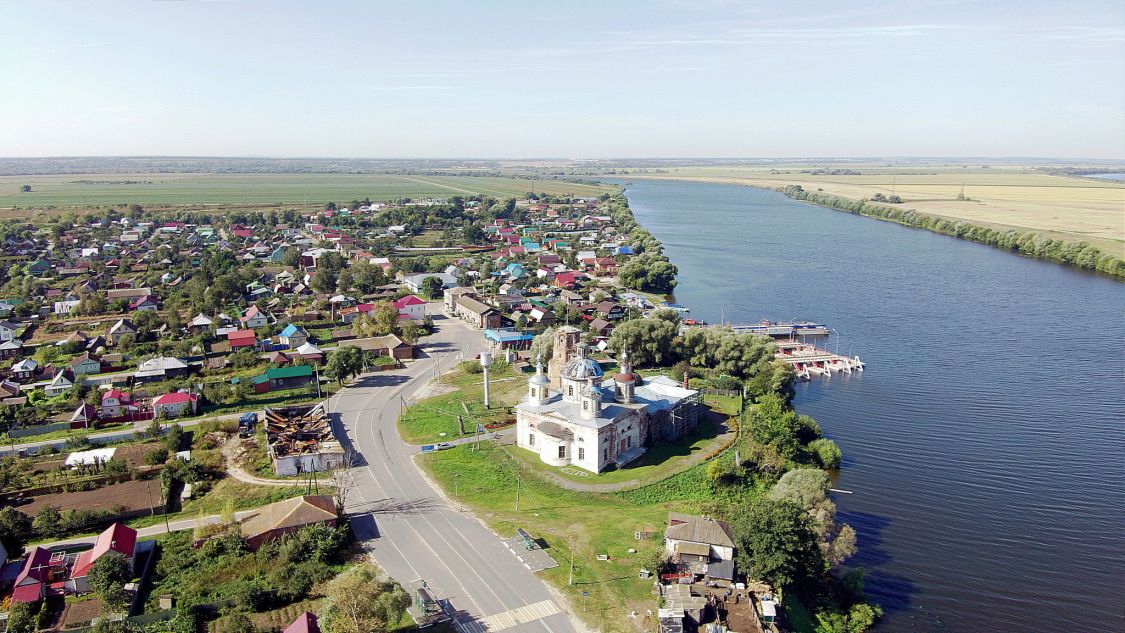 В 22 км от районного города Луховицы и 150 км от Москвы на левом берегу Оки в селе Ловцы на возвышенном месте стоит величественный храм с рядом отдельно стоящей колокольней. Они составляют комплекс разновременных построек.