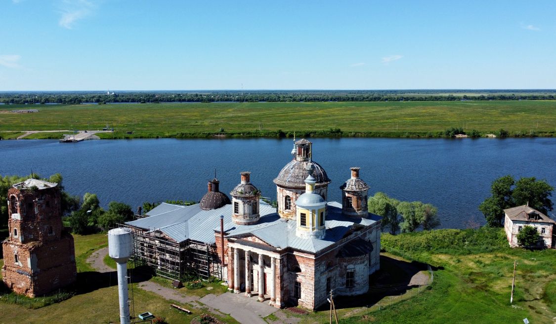 Кирпичное оштукатуренное здание в стиле классицизма состоит из четырехстолпного пятикупольного храма и обширной трапезной. Части храма различны по трактовке архитектурных форм и пропорциональному строю. Простая, но тонко проработанная архитектура храма, украшенная лишь лоджиями из колонн, представляет хороший образец провинциальной классической школы. Приземистые пропорции и огрубленные детали трапезной свидетельствует об упадке стиля. Не исключено, что обработка этой части здания относится к ремонту 1873 года.
