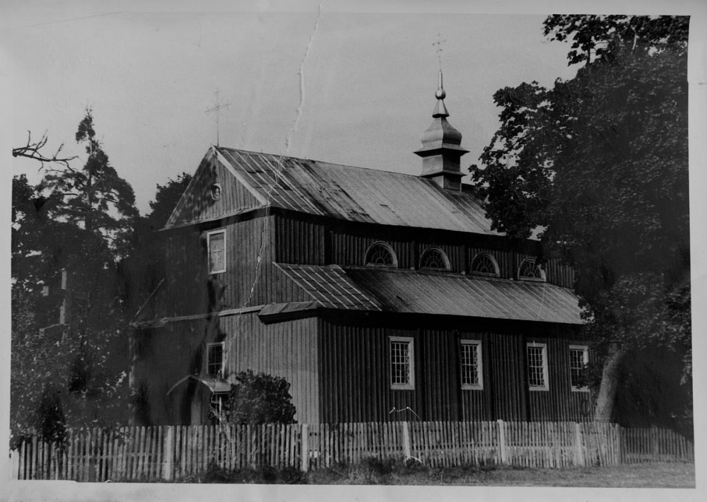 Представляет собой прямоугольную в плане трехнефную базилику с усеченными углами в алтаре. Центральный, выше бокового, неф завершается двускатной крышей. Стены вертикально облицованы досками с укреплениями, усилены балками, прямоугольными и полукруглыми окнами (в центральном нефе). Вид был испорчен в 2008 г. облицовкой пластиковым сайдингом.