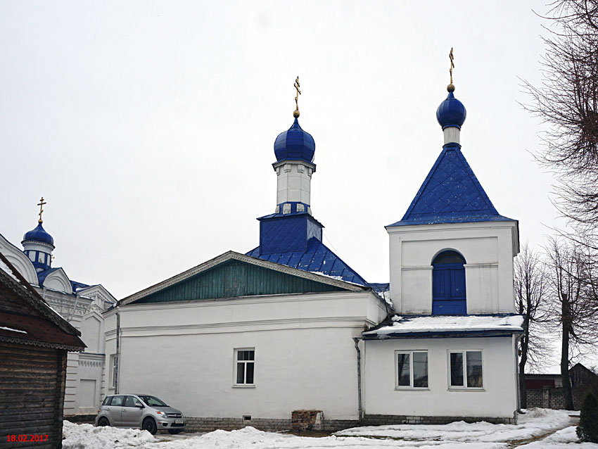 Борисо-Глебская церковь перестроена под храм в середине XIX века из одноэтажного кирпичного жилого дома XVII века. Стены ее украшали чудесные живописные декоративные мотивы: по сырой штукатурке были нарисованы растительные узоры на белорусские народные мотивы, характерные для местной школы зодчества (не сохранились, исчезли под слоями краски). В настоящее время — это крестильный храм при Крестовоздвиженском соборе.