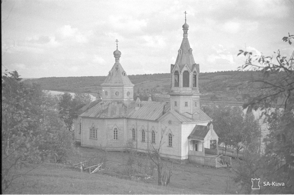 Деревянная, 1867 г., с приделами: прп. Сергия Радонежского и свт. Василия Великого. Закрыта в начале 1939 г. Разобрана в конце 1940-х гг., участок частично затоплен в 1951-1952 гг.