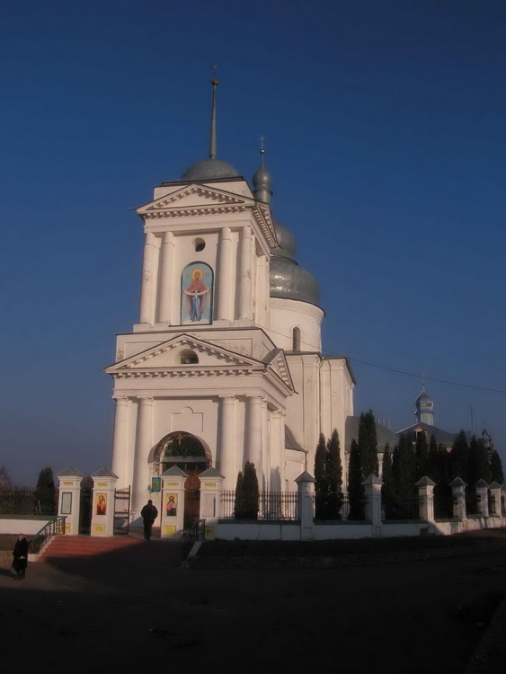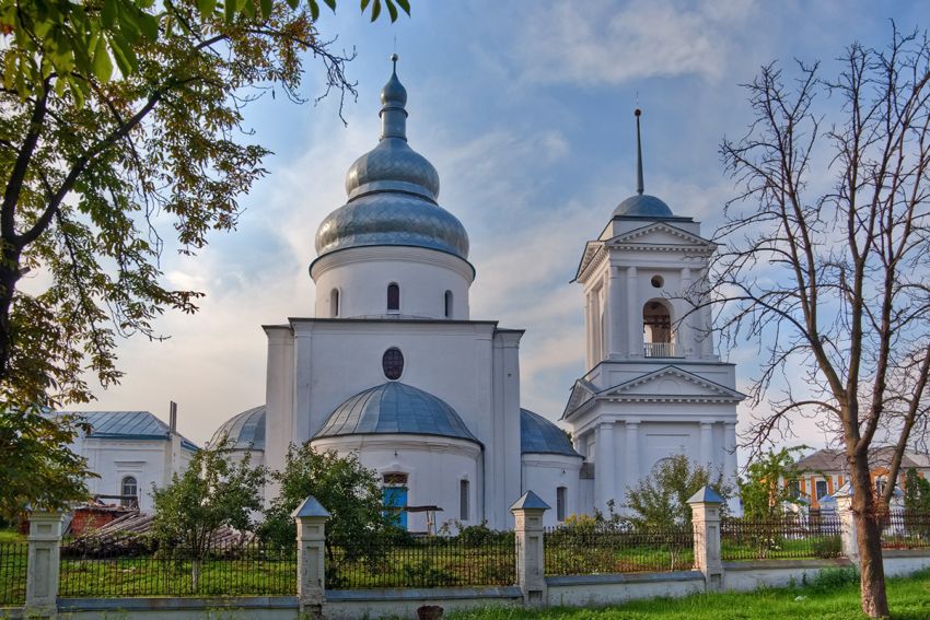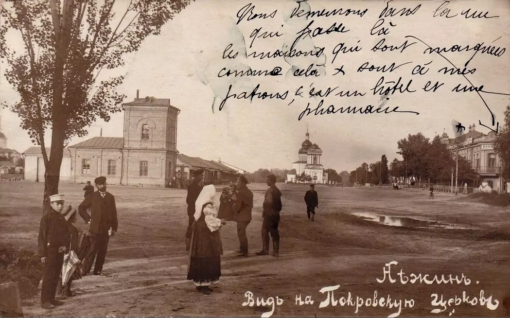 «Близ валу (крепостнаго и замка), — говорит опись 767 г., каменная церковь Покрова Богородицы; при ней старая деревянная церковь Константина и Елены с богодельнею и школою». На месте Покровской церкви была деревянная церковь Рождества Богородицы, построенная после разорения 1620 г. Памятником ее служит трифолог, на котором протопоп Иоанн Хоминский написал, что книга пожертвована братством шпиталя 1633 г. для церкви Рождества Богородицы. Но этот храм скоро заменен был храмом в честь Покрова Богородицы, – памятником открытия Покровской ярманки в Нежине. На ркп. Евангелии был написано, что оно дано в нежинский храм Покрова Марьею Ефремовою, дек. 16 1636 г. эти книги ныне известны только по описанию. Целы: триодь постная к.п. 1648 г., октоих львов.п. 1686 г., требник львов.п. 1719 г., на октоихе к.п. 1739 г. в середине заметка: «1827 г. була суша большая, выходили на орезо, до июля не було дожду».