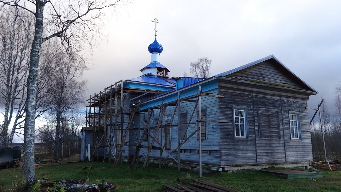 К 30-м гг. XVIII ст. эта церковь обветшала, поэтому по благословенной грамоте архиепископа Варнавы от 7 июля 1727 г. построена была новая деревянная — во имя Сретения Господня (без приделов) и освящена 5 дек. 1729 г. приходским священником Тимофеем Ивановичем Немоновым. Прежняя была разобрана в 1744 г. и вместо бывшего в ней придела Михаила архангела в том же году, по благословенной грамоте арх. Варсонофия от 24 февр. 1745 г., устроена была однопрестольная шатровая церковь во имя архангела Михаила, освященная 5 окт. 1745 г. сийским архимандритом Леонтием. Эта церковь существует до настоящего времени.