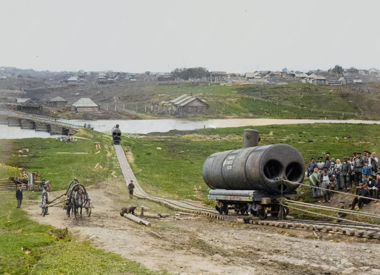 Главная Блог Перевозъ паровыхъ котловъ черезъ рѣку ТурьюДореволюціонная исторія Россіи въ цвѣтѣ Перевозъ паровыхъ котловъ черезъ рѣку Турью, фотографъ: Николай Корнельевичъ (Корниловичъ) Ляпушкинъ, Пермская губернiя, Верхотурскiй уездъ, г. Краснотурьинскъ, конецъ 1890-хъ начало 1910-хъ годовъ.