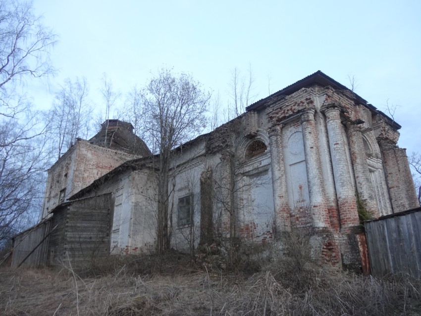 Церковь одноэтажная (холодная), теплый храм трехсветный, с куполом. На колокольне было 11 колоколов обшим весом 487 пудов, самый большой – 304 пуда, самый малый – 27 фунтов. Вокруг церкви имелась каменная ограда, с двух сторон решетки железные, с двух других – деревянные. В ограде располагается кладбише. Сохранилось много берез и елей на его территории. Сохранилось также несколько деревьев от прицерковного парка. Одна из лип имеет дупло, в котором свободно уместится взрослый человек.