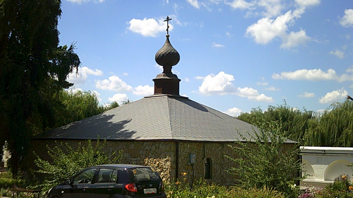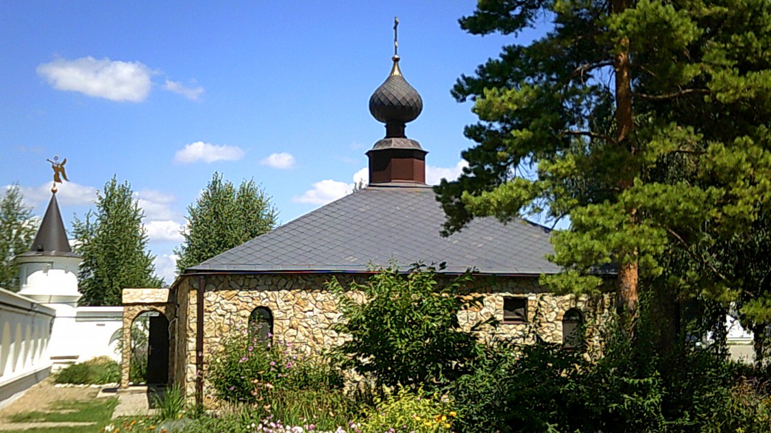 Бывшая кузница колхозной Сад-бригады усилиями матушки Неониллы, прихожан-трудников из Краснодара и строителей сначала стала маленьким храмом с побеленными стенами и колокольней над входом в виде арки. В августе 2007 г. было совершено освящение престола, в храме по праздникам стали совершаться литургии и водосвятные молебны. Второй этап истории храма – его реконструкция, которая была проведена в течение 2008 года – к маленькому храму была сделана пристройка, в которой разместились 3 келии для сестер, маленькая монастырская лавка для продажи свечей, библиотека, маленькая трапезная и бытовое помещение. Снаружи стены храма были окультурены диким камнем, храм покрыт медной крышей, установлены медный купол в форме древней луковицы и Крест. Рядом с пещерным храмом была установлена деревянная звонница по образцу звонницы Спасо-Андронникова монастыря в Москве. К празднику Крещения Господня 2009 года в храме был установлен резной иконостас из дуба и липы, выполненный в византийском стиле, это копия иконостаса храма в Косьминской пустыни Ново-Тихвинского монастыря в г.Екатеринбурге; в иконостасе иконы Спасителя и Божией Матери «Тихвинская» (так как источник на подворье освящен в честь Тихвинской иконы Пресвятой Богородицы).