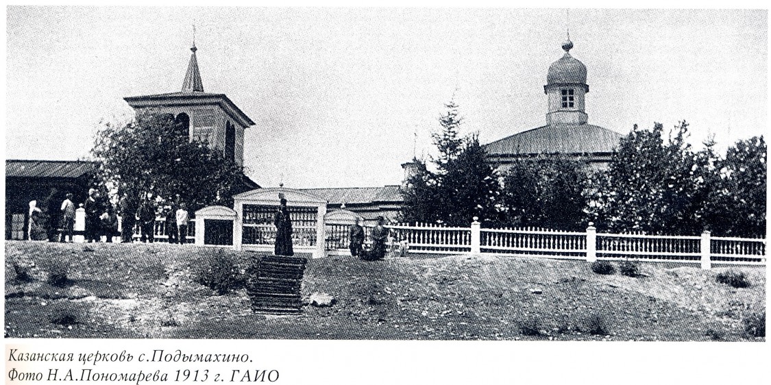 «…Утром, 21 июня — село Подымахинское. Берег усеян народом, собралось человек 350; с раннего утра, как только показалась наша флотилия, начался праздничный звон. Священником состоит в течение более 13 лет о. Александр Потанин; псаломщик, вновь назначенный, еще не прибыл. Храм, во имя Казанской Божией Матери, весьма обширный; заботами о. настоятеля содержится опрятно; несколько почернела на иконостасе позолота вследствие удара молнии. После молебна Пресвятой Богородице и св. Иннокентию с акафистом Владыка сказал поучительное слово о вреде пьянства и распущенности и призывал слушателей к жизни, согласной с высокими заветами нашего Спасителя. В местной двухклассной церковно-приходской школе спрашивал учеников по всем предметам; познания нашел вполне удовлетворительными, особенно остался доволен постановкой пения. О. Потанин, очевидно, очень любит школу, и к ее благоустройству прилагает много труда, забот и старания. Учителем состоит М.И. Попов, учащихся 66 чел.; школьное здание прекрасное, светлое и просторное, построенное на частные средства»…