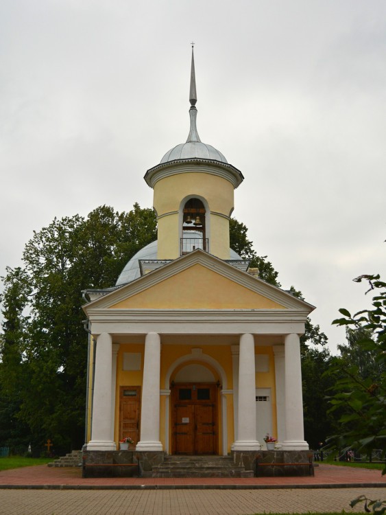 Однокупольный храм в стиле зрелого классицизма с крупными итальянскими окнами на боковых фасадах. Центральный объем возведен в формах классического четверика с массивным сферическим луковичным куполом, увенчанный маковкой с кованым крестом ручной работы. С восточного торца располагается полукруглая апсида с конусной конхой. С западного торца располагается небольшая прямоугольная трапезная, полностью сопряженная с приделом двухъярусной цилиндрической колокольни с центрическим ярусом звона, украшенным куполом с высоким металлическим фигурным шпилем. В наружной отделке фасадов выделяется ступенчатый карниз, классический фронтон над центральным входом, украшенный фризом, пилястры по торцам. Внутренняя усадебная аллея отделяет церковную паперть от главного двухэтажного дома усадьбы. Отделка интерьера храма перекликается с архитектурными формами усадебного дома. Это свидетельствовало не только о единстве стиля всего усадебного ансамбля, но и о том, что церковь была неотъемлемой частью жизни имения. Брянчаниновы регулярно посещали богослужения.