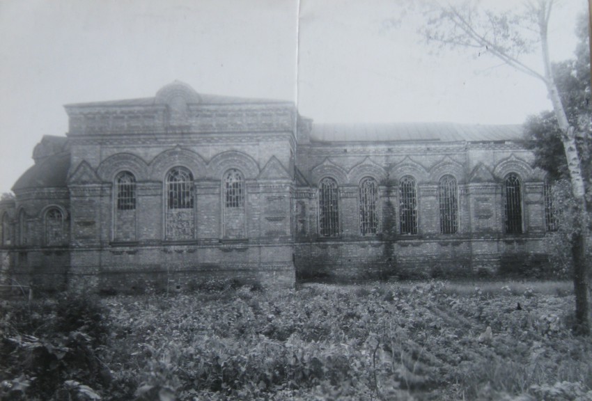 Судя по сохранившимся фрагментарным фотографиям, утраченный Вознесенский храм был построен по проекту курского епархиального архитектора Грушецкого. В Курской области до настоящего времени сохранилось по крайней мере два храма-аналога: церковь Параскевы Пятницы в с.Погорельцево Железногорского р-на (https://sobory.ru/article/?object=16319) и Михайловская церковь в с.Глебовщина Фатежского р-на (https://sobory.ru/article/?object=19707).