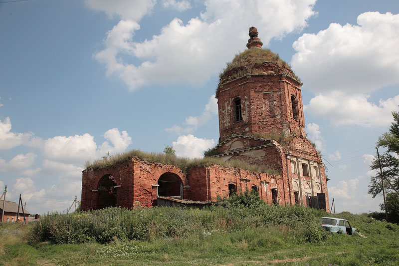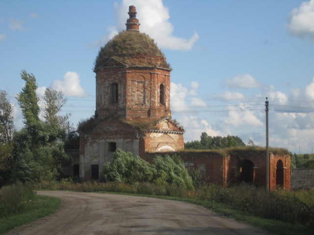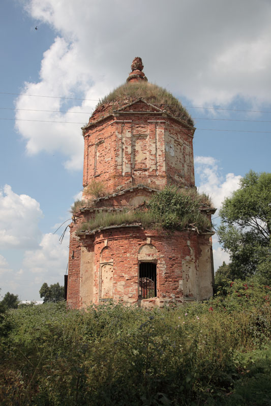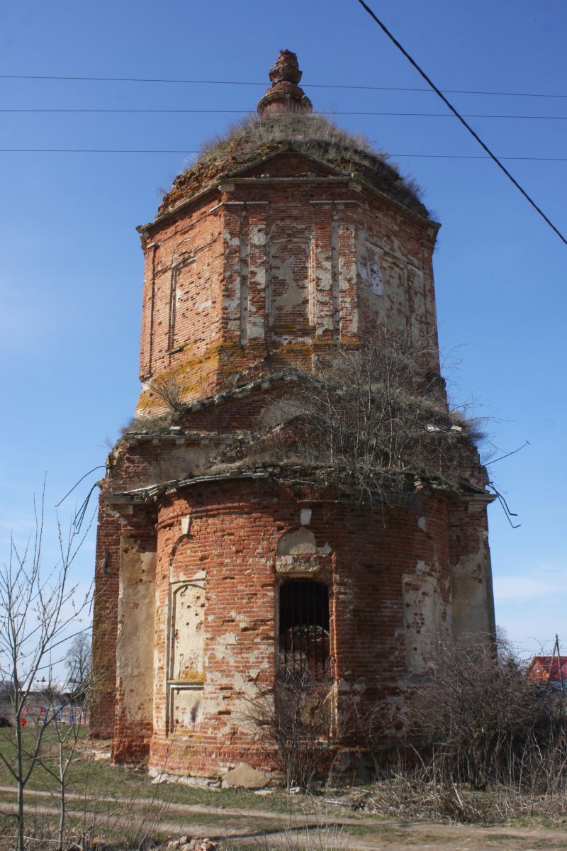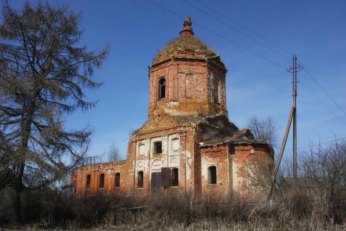 В середине 19 в. здешняя усадьба (от которой ничего не сохранилось) принадлежала А. Д. Шевичу; после него вплоть до 1917 г. – дворянам Поповым, последней помещицей была А. Д. Попова. В начале 20 в. в селе действовала земская школа. В 1917 г. церковь была закрыта; в советское время были разрушены верхние ярусы колокольни, у основного объема – портики, у трапезной – коробовый с распалубками над окнами свод; утрачены интерьеры. С момента первого обследования в 1970 г. к нач. 21 в. сооружение сильно обветшало.