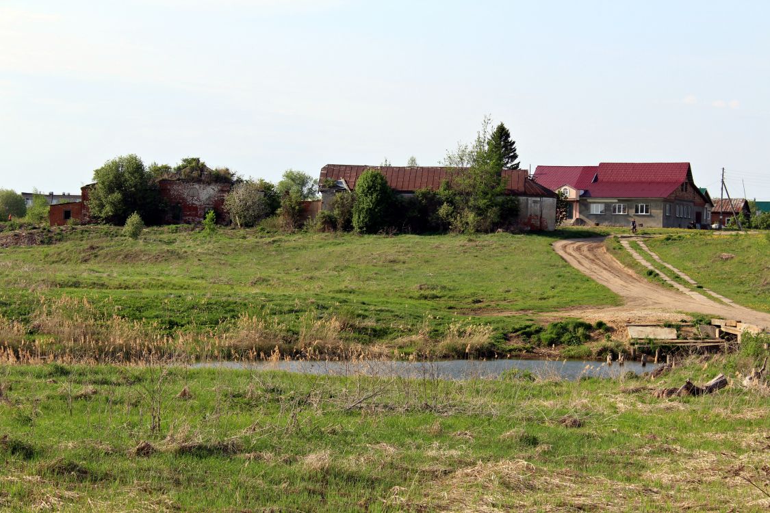 Храмы расположены на возвышенном берегу р. Ирмес, вдоль дороги, проходящей через село; по другую сторону дороги находится пруд. Холодная церковь Введения построена на средства прихожан в 1822 г., теплая Казанская — в 1863 г. Здания кирпичные, Введенский храм оштукатурен. Оба храма имеют ориентированную по продольной оси объемно-пространственную композицию и расположены уступом по отношению друг к другу (Казанская церковь чуть севернее). В комплексе доминировала колокольня Введенской церкви, вероятно отдельно стоящая. Она была разобрана в 1945 г., как и каменная ограда. Завершения обоих храмов утрачены, окна растесаны.