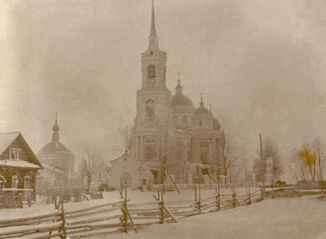 К 1 января 1910 г. основной капитал его состоял из 4377 р. 55 к. б) Богадельня им. Василия Ив. Серебрякова для призрения престарелых и больных женщин, откр. 15 августа 1903 г. Призреваемых 12 человек. в) Детский приют, учр. при богадельне 15 авг. 1905 г. в память рождения Наследника Цесаревича и В. К. Алексея Николаевича. Воспитывается в нём 6 мал. от 7 до 12 л. Средства содержания богадальня и приют получают от В. И. Серебрякова, в колич. около 600 р. в год. К 1 января 1910 г. основного капитала сих учреждений состоит 13918 р. 94 к. % бумагами. 21 ноября 1909 г. при церкви открыто общество трезвости; вступило 37 членов. Расстояние от Костромы 340 в., от Ветлуги 40 в., от железнодор. станции Шарьи 28 в., от почтово-телеграф. станции 1 в.; больница в селе. Ближайшие церкви сёл: Троице-Одоевского и Ново-Троицкого 10 в., Ильинского 11 в. Причт: 3 священника, диакон, 3 псаломщика. Средства причта: каз. жалованье стар. священнику 141 р. 12 к., 2-му 105 р. 84 к., диакону 52 р. 92 к., псаломщиками — 1-му 35 р. 28 к., 2-му 23 р. 52 к. (3-й причт получает жалованье из местных средств по равной части от церкви и причта — священник 70 р., псаломщик 20 руб.); проценты с капитала в 670 р.; половина арендных денег, получаемых за церк. лавки, в колич. 129 р. 25 к.; доход от богослуж. и треб — священника 300 р., диакона 200 р., псаломщика 100 руб. Причтовые помещения собственные. Земли: усадебной 7 д. 2320 с., пахотной 71 дес. 1523 саж., сенокосной 77 д. 448 с., неудобной 64 д. 1128 с. Планы и меж. книги на землю есть. Прихожан м. п. 3319, ж. п. 3599. Прихожане занимаются хлебопашеством, выработкой и сплавом леса. Прих. селений 28, на пространстве 9 в. от церкви. Сообщение беспрепятственно. Школы: в селе 1) однокл. ц.-приходская женская; 2) однокл. муж. земская; в приходе 5 однокл. земских.Источник: Краткие статистические сведения о приходских церквях Костромской епархии. Кострома : Губернская типография, 1911.