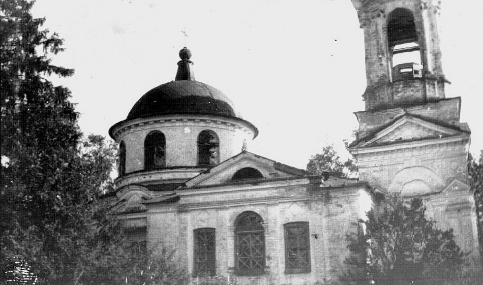 Храм стоит на заросшем лесом кладбище. Основной объем церкви — двухъярусная купольная ротонда (верхний ярус — более низкий барабан меньшего диаметра), завершенная миниатюрной главкой. С запада к ней примыкает широкая прямоугольная в плане трапезная и стройная двухъярусная колокольня, увенчанная шпилем. Пары колонн по сторонам боковых входов и трехчетвертные колонны, фланкирующие окна (в том числе ложные) в нижней части ротонды, служат зрительной основой антаблемента, над которым по странам света возвышаются лучковые фронтоны со стрельчатой нишей в тимпане. Арочные окна в верхнем ротондальном барабане, объединенные понизу трехчастным подоконным поясом, лишены обрамлений. В завершении объема — профилированный карниз с кронштейнами-модульонами. Боковые фасады трапезной оформлены четырехпилястровыми портиками, в интерколумниях которого расположены окна — арочное в центре и более низкие прямоугольные по сторонам. Над их перемычками помещены ромбовидные нишки. Трехчастные антаблементы портиков увенчаны треугольными фронтонами с сегментным окном в тимпане. В декоре нижнего четырехгранного яруса колокольни также обыграна тема пилястрового портика, обрамляющего арку и отмечающего углы. Профилировки треугольного фронтона в завершении яруса дополнены консольками-модульонами. Наиболее пластично убранство верхнего яруса: между арок, отмеченных трехчастными замками, на хорошо прорисованных постаментах помещены парные ионические колонны, поддерживающие многопрофильный карниз, нижняя часть которого активно раскрепована. В основании купольной кровли, по оси арок — люкарны-резонаторы.Основной объем храма перекрыт сферическим куполом, трапезная — тремя крестовыми сводами, разделенными подпружными арками, в боковых стенах нижнего яруса колокольни устроены лестницы к звону. К особенностям интерьера церкви можно отнести хоры, свидетельствующие о том, что храм был усадебным. Сохранились элементы убранства интерьера — богатый лепной карниз в основании свода и росписи на евангельские темы.