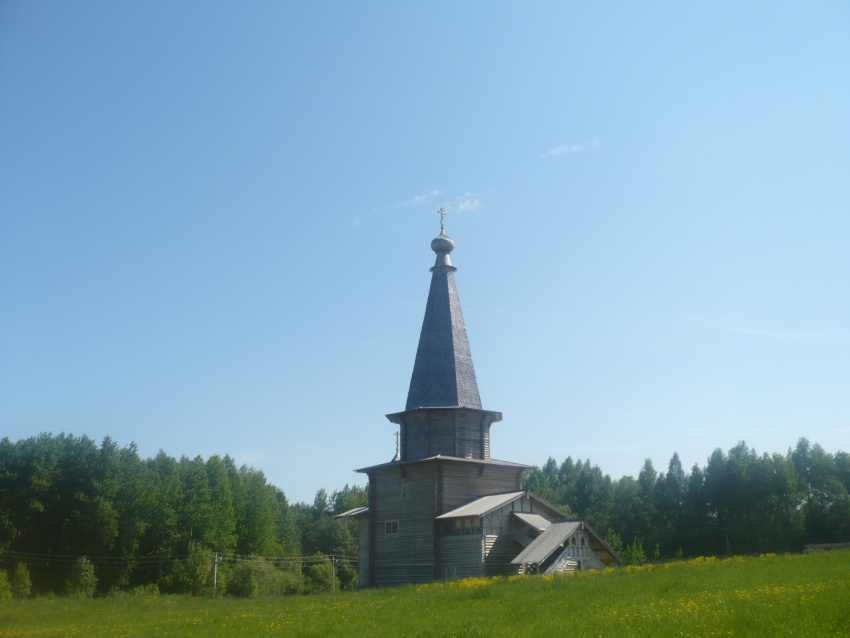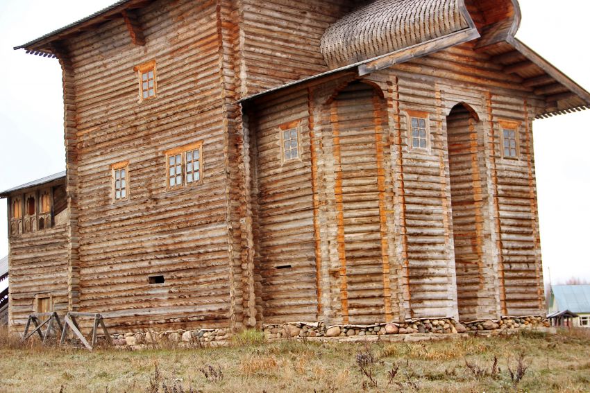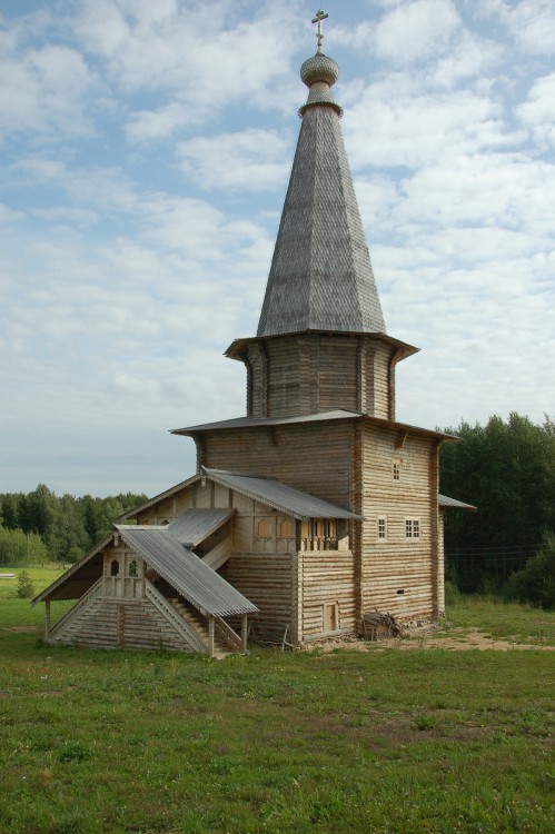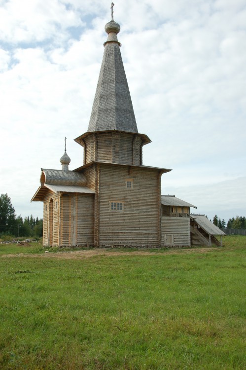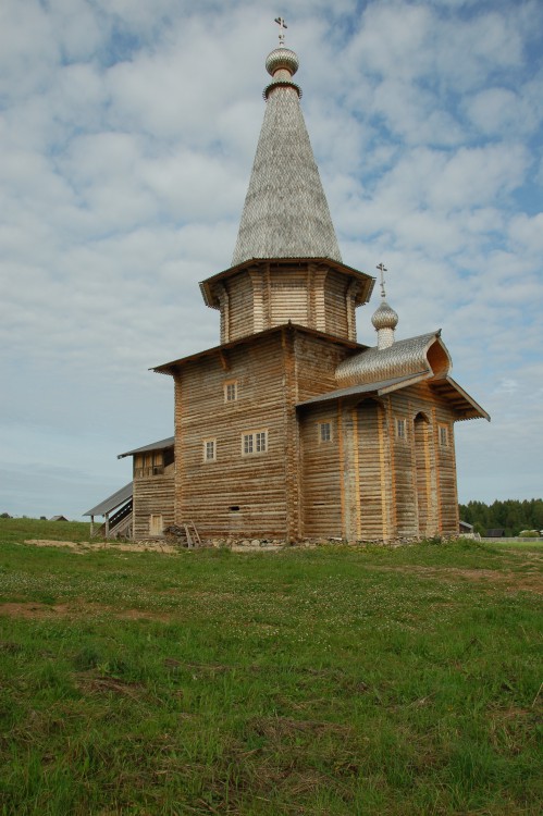Храм типа восьмерик на четверике с шатровым завершением (размеры храма в плане: 9,9 х 9,9 м). Высота четверика составляет 10,7 м, восьмерика – 5,5 м, шатра – 15,3 м, главы с крестом – 6,6 м. К восточной стене храма пристроена двухчастная апсида (в плане 4,9 х 8,5 м, высота сруба – 6,8 м), крытая «бочкой»; к западной стене – трапезная (паперть). К западной стене паперти пристроено большое по объему двухвсходное крыльцо под рундучной кровлей, богато lекорированное элементами ограждающих конструкций и декора кровли, что дополняет лаконичное декоративное оформление фасадов церкви.