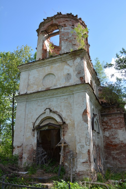 Церковная колокольня строена в один ярус, имеет высоту около 12,5 м, завершалась высоким шпилем с плавно расходящимися книзу гранями. Внутри церковь была расписана. Росписи частично сохранились до наших дней. Рядом с церковью находился дом для священника, построенный в 1855 г., и построенная в 1894 г. церковная сторожка.