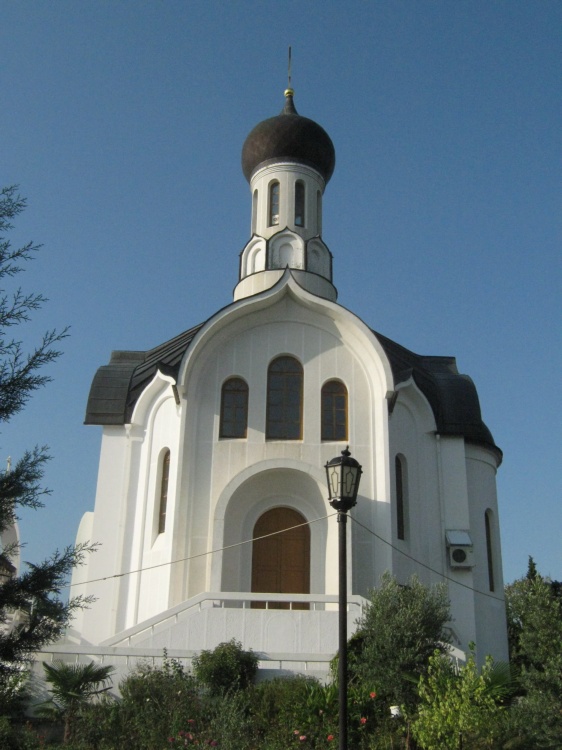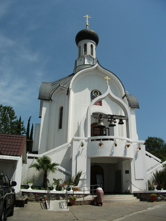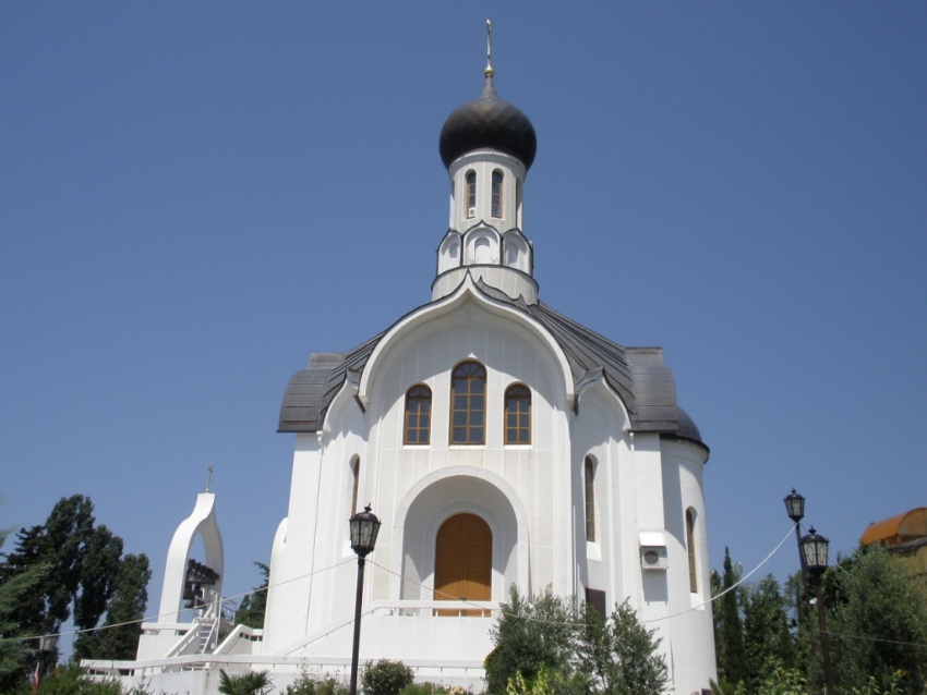 Храм расположен рядом с центральным входом на Успенское (ранее — Центральное) кладбище города Сочи. Заложен 8 мая 1995 года в честь 50-летия Победы в Великой Отечественной войне. Строительство велось сочинским Фондом Возрождения Православия. В 1996 году храм был освящен, а 22 июня 1997 года — состоялась первая литургия. 23 ноября 2009 года освящен верхний придел в честь святого великомученика Георгия Победоносца.