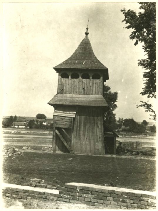 Деревянная церковь была построена в 1854 году, которая стояла до конца XIX века. На фото рядом с деревянной стоит каменный храм 1901 (построенный по проекту В. Нагорного). Судя по всему, деревянная церковь не сохранилась, так как нет о ней нигде ни информации ни фото.