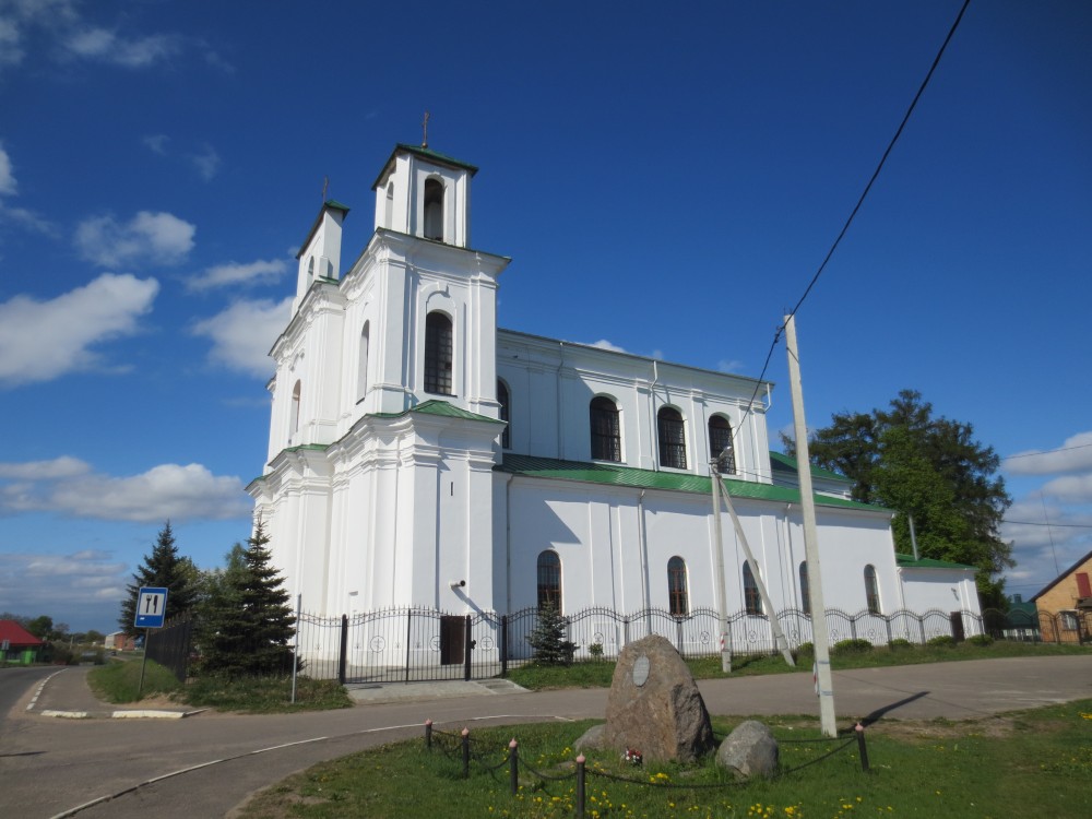 Единственный в Беларуси храм рыцарей Мальтийского ордена. Был возведен владельцем местечка командором Мальтийского ордена М. Домбровским по проекту известных архитекторов И. Фонтана III и И. Глаубица как костел Иоанна Крестителя. Первоначально на этом месте по приказу М. Радзивилла Сиротки для его сына Жигимонта Кароля в 1610 г. был построен деревянный костел св. Марии и Иоанна Крестителя, предназначенный для рыцарского мальтийского ордена и привезенной из Италии скульптуры Божьей Матери. В интерьер храма 1740—46 гг. в качестве пресбитерия включена часовня 1639 г. постройки. В 1830-е и в конце 1990-х передан Православной церкви.
