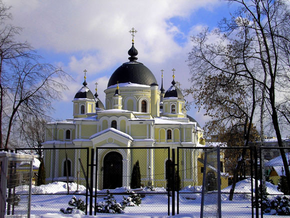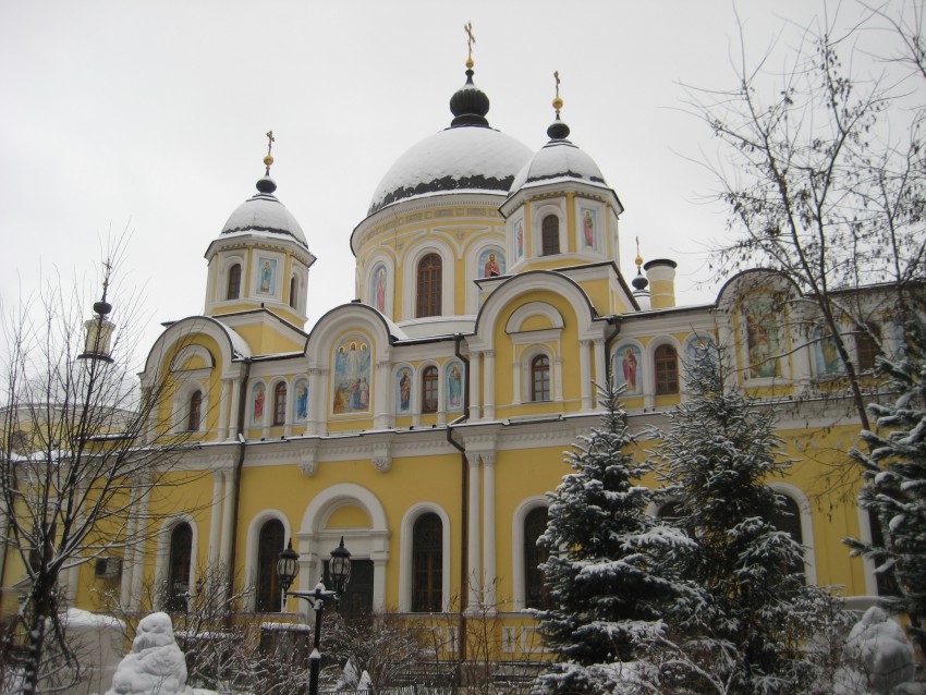В 1846 г. Всехсвятский храм Покровского монастыря решено было перестроить. Разработку проекта монастырского собора в честь Воскресения Словущего поручили М. Быковскому. Согласно задумке архитектора, старая церковь стала частью нового храма. В частности, центральная часть с четырьмя столпами и куполом и восточная стена главного алтаря стали частью нового собора. Декор пятикупольного храма со световыми барабанами выполнен в русско-византийском стиле. С запада пристроили трапезную, по бокам два придела: северный — Тихвинской Божией Матери и южный — святой мученицы Александры. Пятиярусный иконостас главного алтаря содержал как старинные иконы, так и новые, писанные «во фряжском пошибе» (более натуралистичная манера). Стены собора украшали росписи Артари, Мягкова и Фивейского, сохранившиеся до наших дней.Информация с сайта intomoscow