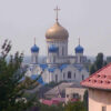 Собор Рождества Христова возведен по проекту К.И. Росси. Строительство собора началось в 1810 г. на вклады царской семьи. Однако почти завершенное здание в 1813 г. обрушилось и ныне существующее сооружено вновь в 1814-20 гг. Кирпичные стены оштукатурены и окрашены. Квадратный в плане храм, увенчанный пятью купольными главами на цилиндрических барабанах, выполнен в стиле позднего классицизма с характерным для него декоративным убранством.