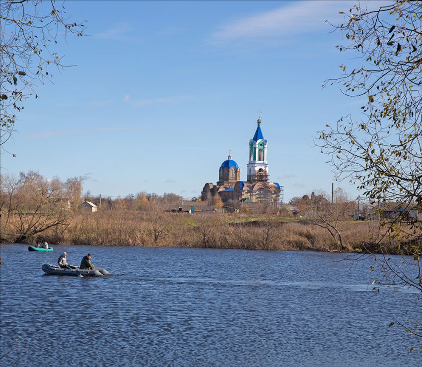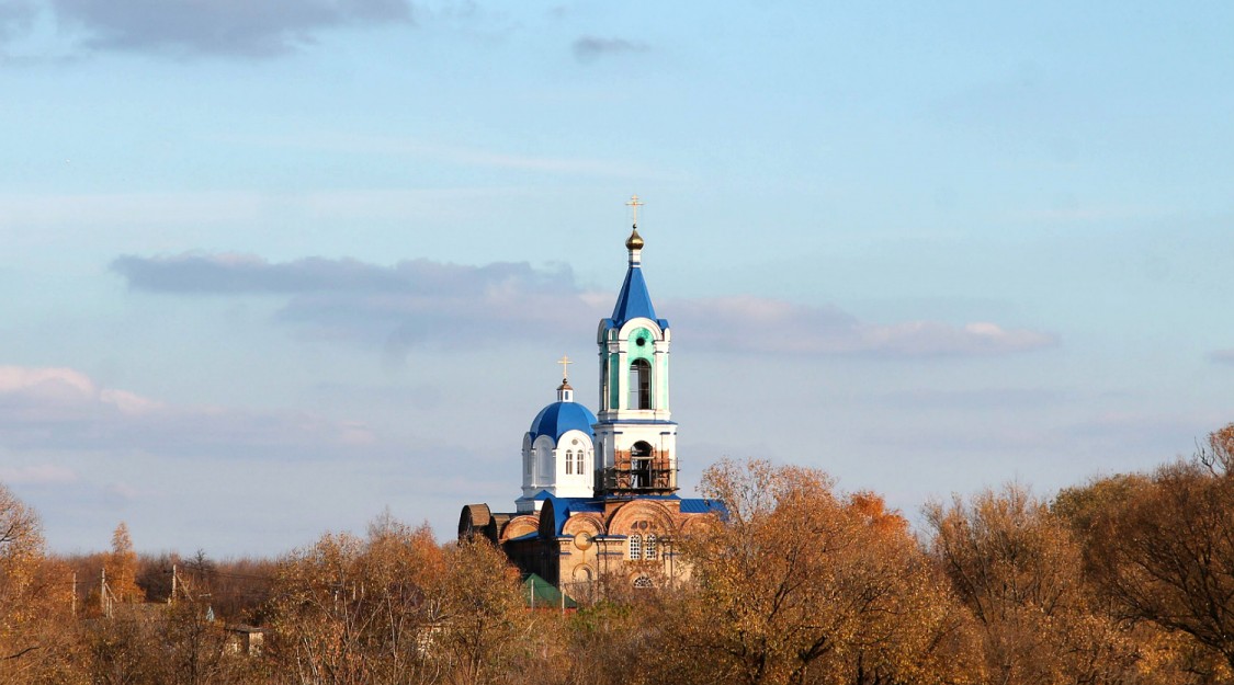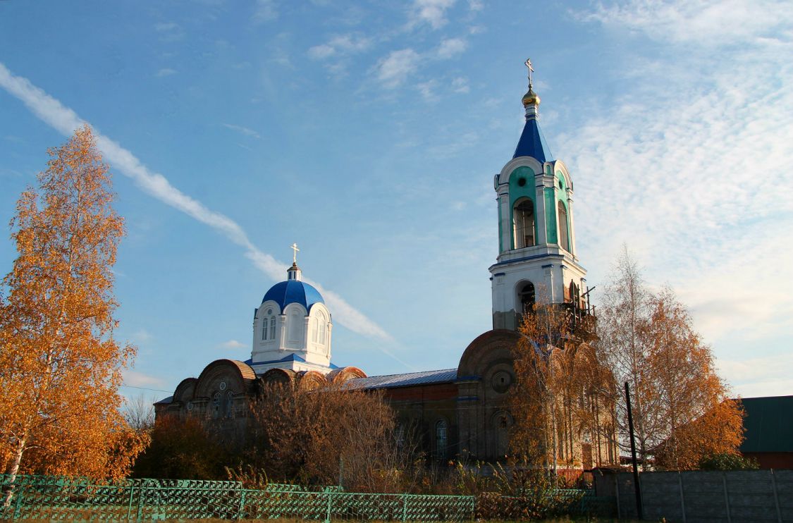 Церковь возведена в стиле эклектика. К крестовокупольному в плане храму с востока примыкают три полукружия апсид, с запада — паперть с трехъярусной колокольней. Грани восьмерика фланкируются огибающими пилястрами. Большие грани прорезаны сдвоенными проемами света и объединены архивольтом, опирающимся на пилястры. Меньшие грани имеют узкое ложное окно и так же завершаются архивольтом. Трехнефный четверик с севера и юга по центру имеет ризалиты. Оконные проемы с циркульными перемычками обработаны профилированными наличниками, завершающимися архивольтами. После революции церковь приспособили под зерносклад, а после – склад химических удобрений.
