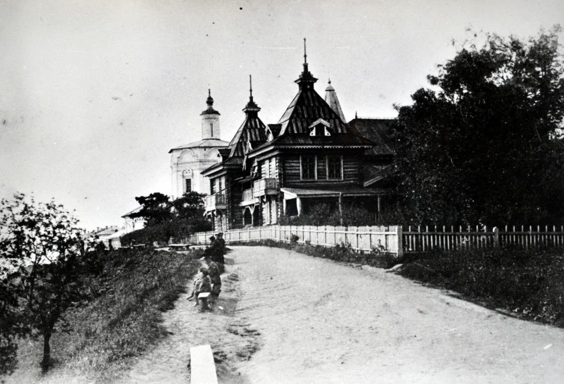 Земли при сей церкви: усадебной при доме 427 кв сажень в певой части г.Вятки по Московской улице в полуверсте от церкви ; пахотной нет ; сенокосной в разных местах, как по правую, так и по левую сторону р. Вятки удобной и неудобной 10 дес. И 608 кв. сажень, каковою землею владеет причт. Плана на землю в межевой книге нет, копия с неутвержденного плана.