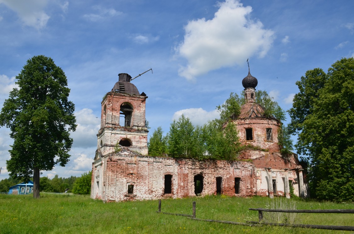 Стоит посреди широкой улицы, в западной части села, приписанного в 16 в. к суздальскому Покровскому монастырю, позже, во 2-й пол. 17 в., принадлежавшего помещику Ф. Зловидову, а в конце того же столетия — думному дворянину С.С. Нарбекову. К юго-западу от церкви, продольная ось которой соответствует направлению улицы, прежде находилась барская усадьба; от нее сохранились незначительные фрагменты парка. Кирпичная церковь сооружена в 1827 г. на месте деревянной 2-й четв. 17 в. В сер. 19 в. трапезную расширили к западу, соединив ее с колокольней и обстроив последнюю боковыми палатками на высоту стен трапезной. Все эти объемы вошли в единый прямоугольник плана к западу от четверика. Типичный сельский храм в стиле позднего классицизма. К северу от храма находится одноэтажная кирпичная сторожка.