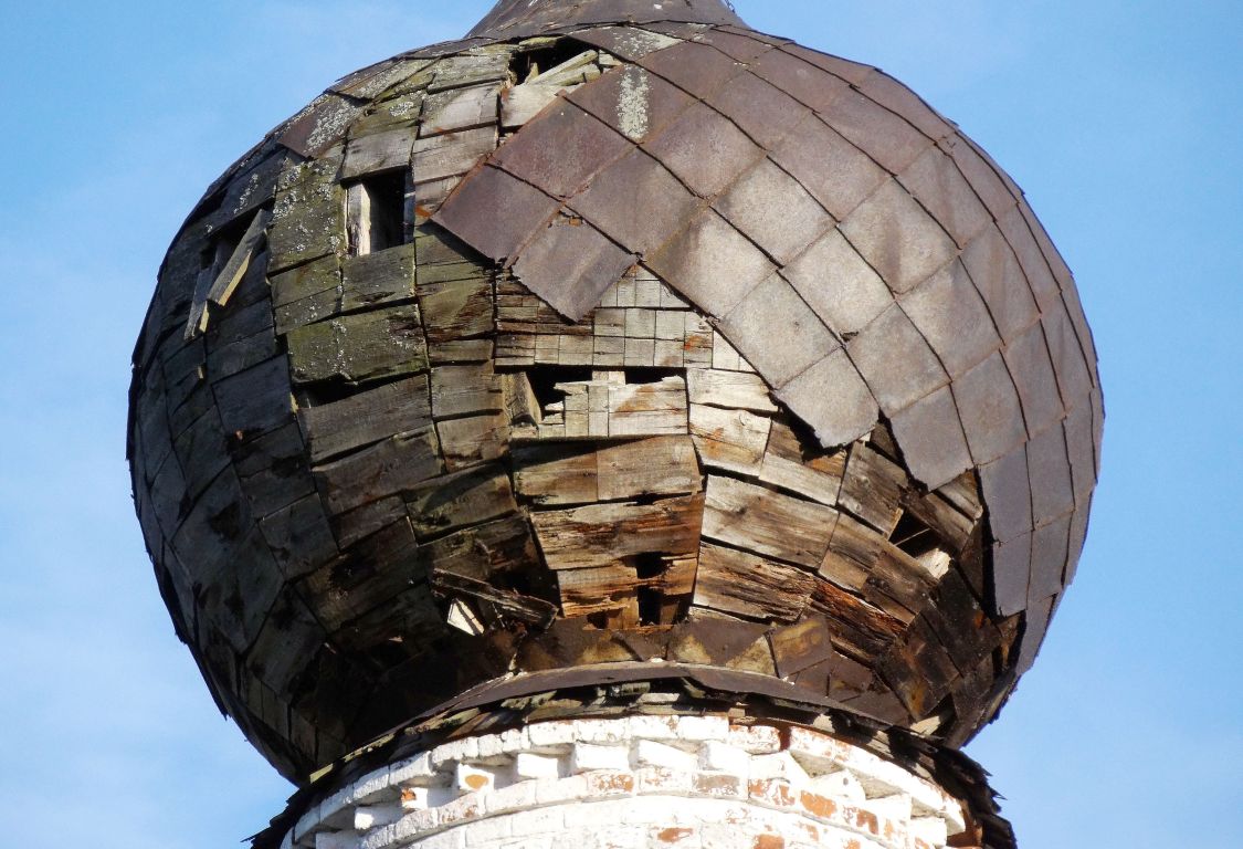 В симметричной объемной композиции церкви главное место занимает невысокий односветный четверик с чуть суженной полукруглой апсидой, несущей массивный цилиндрический барабан равной ему ширины. Барабан увенчан сферическим куполом с луковичной главкой на узком световом барабанчике. С севера и юга четверик оформлен четырехколонными тосканскими портиками с пологими фронтонами. Крайние западные колонны портиков наложены на стены трапезной под двускатной кровлей, которая шире и ниже четверика. Общий карниз объединяет трапезную, портики и полукружия апсиды. С запада композицию замыкает двухъярусная с промежуточным полуярусом невысокая колокольня. Ее криволинейную граненую кровлю завершает легкий шпиль.